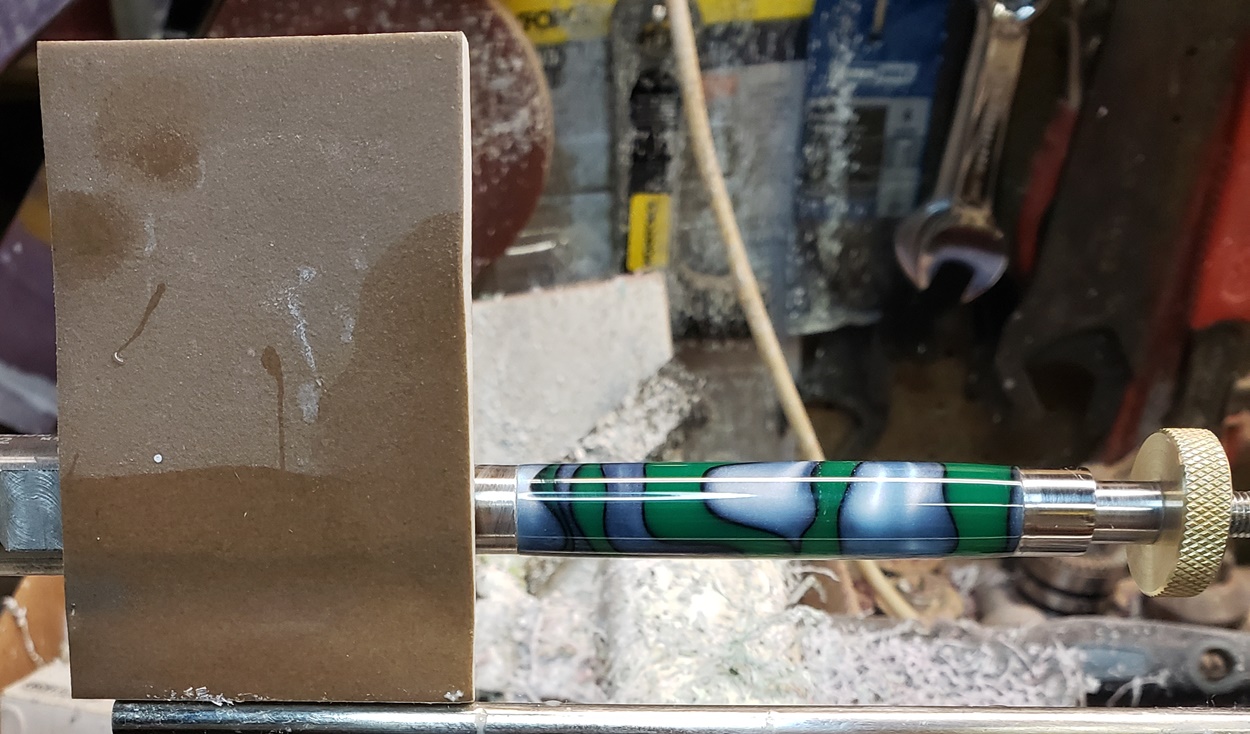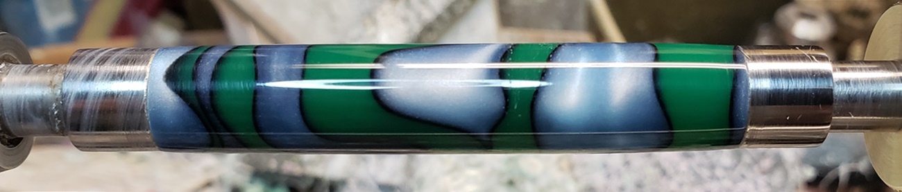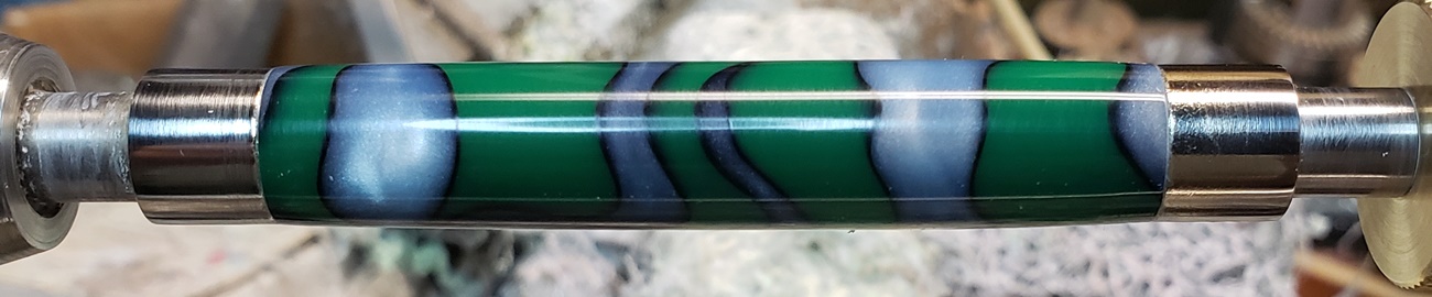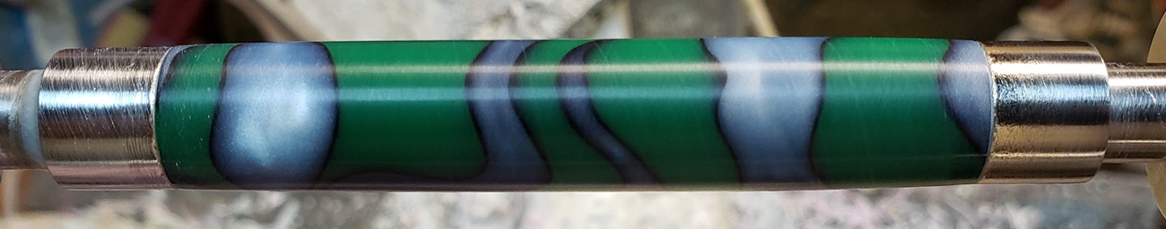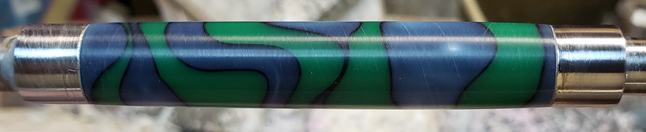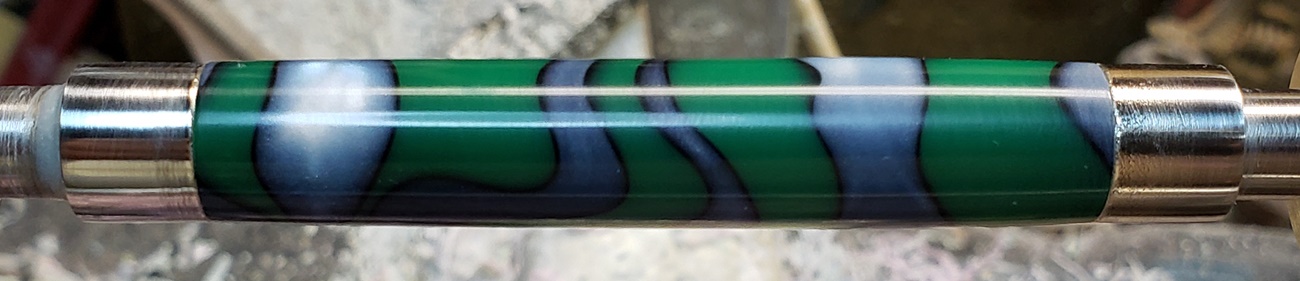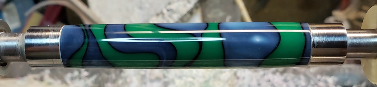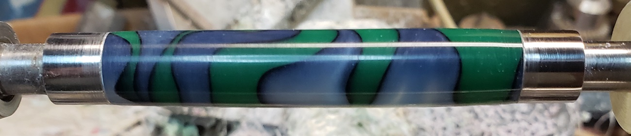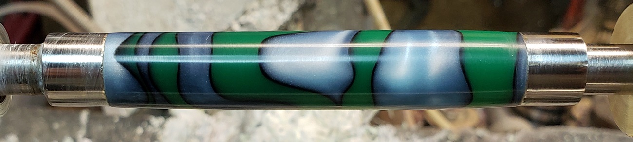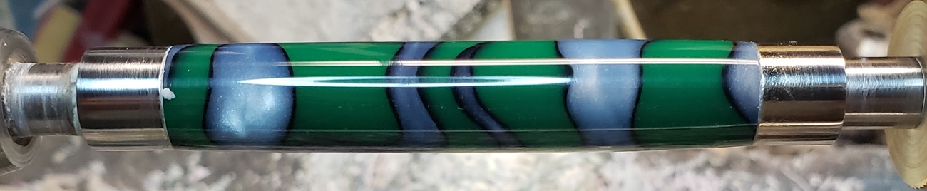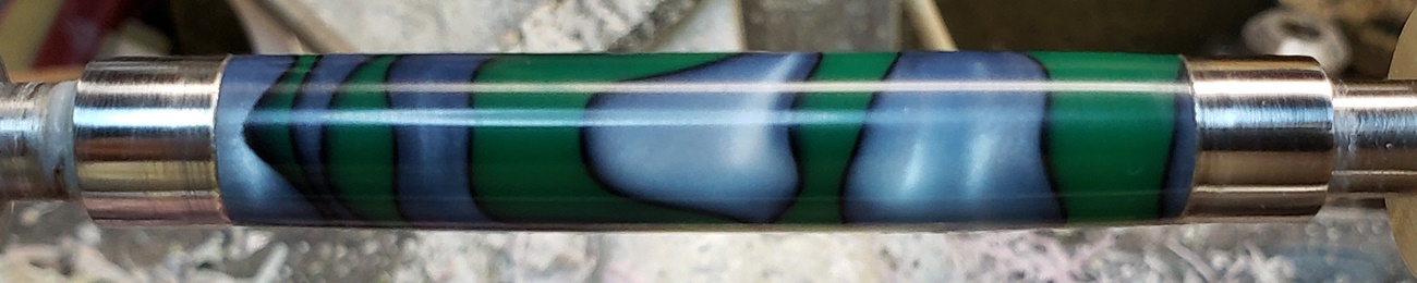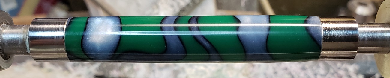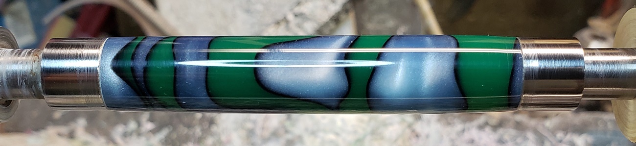This is an AA blank from Woodcraft called Irish Hill. It's a good looking blank. First I used 220-320-400-600 wet, then polished it with Tri-M-Ite. It polished up nicely. But I'm trying to put a matte finish on it. So I went back and used the first grade of Tri-M-Ite only, but you can't hardly see a difference.