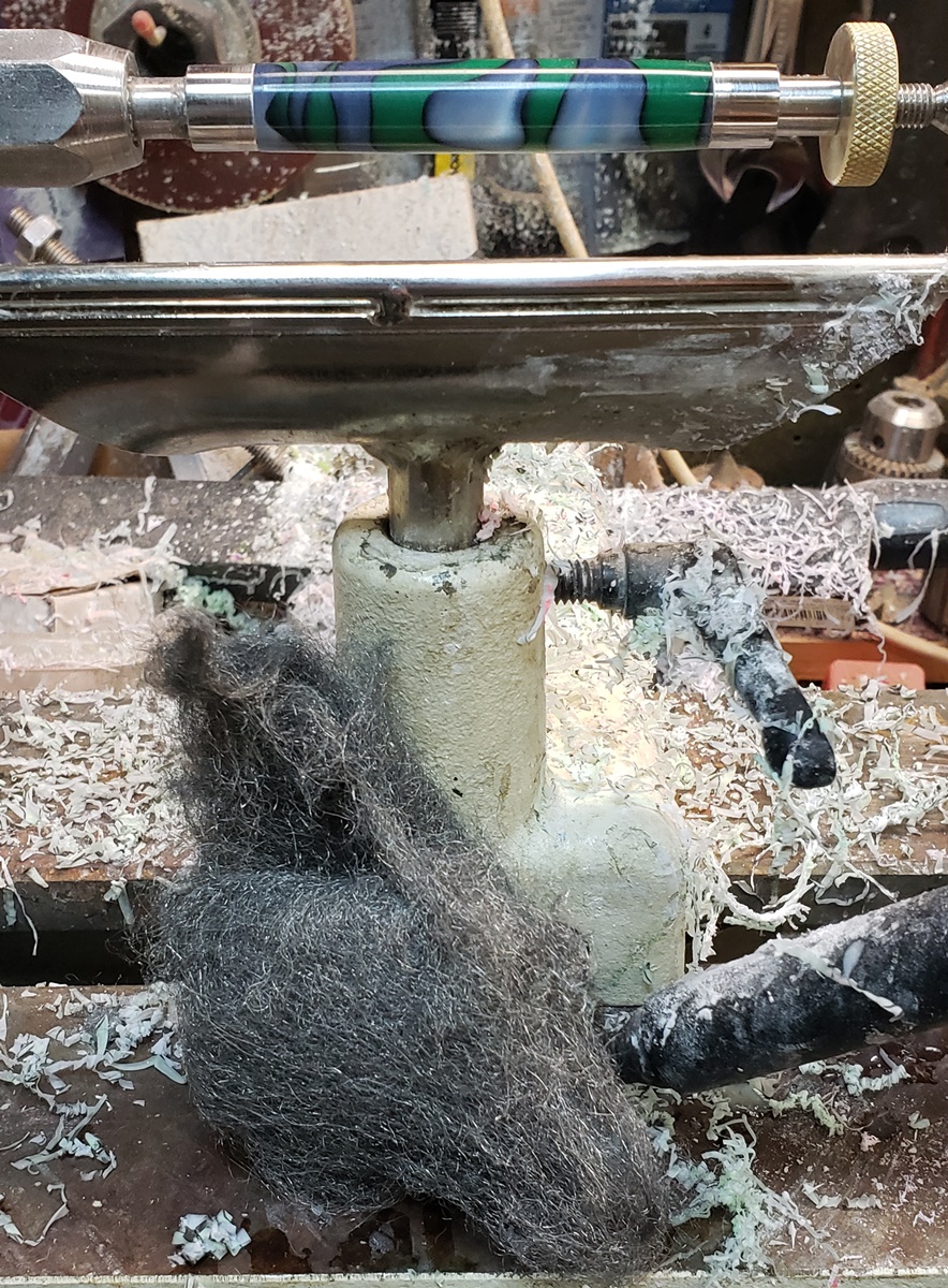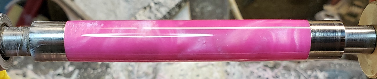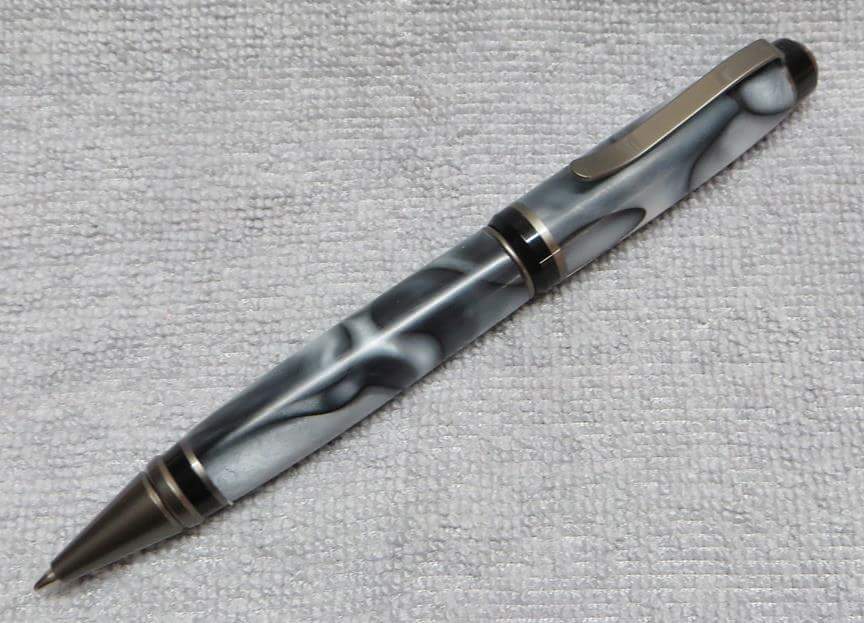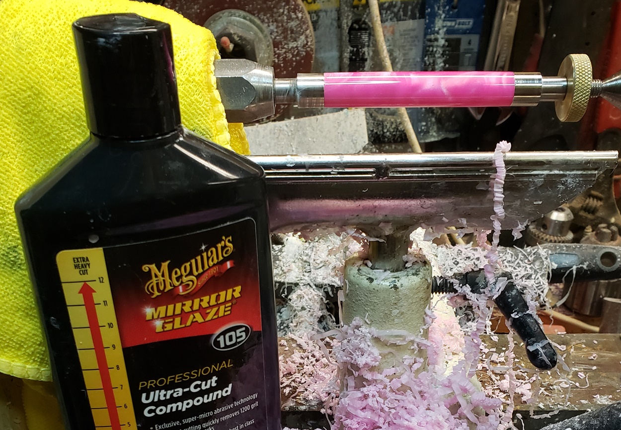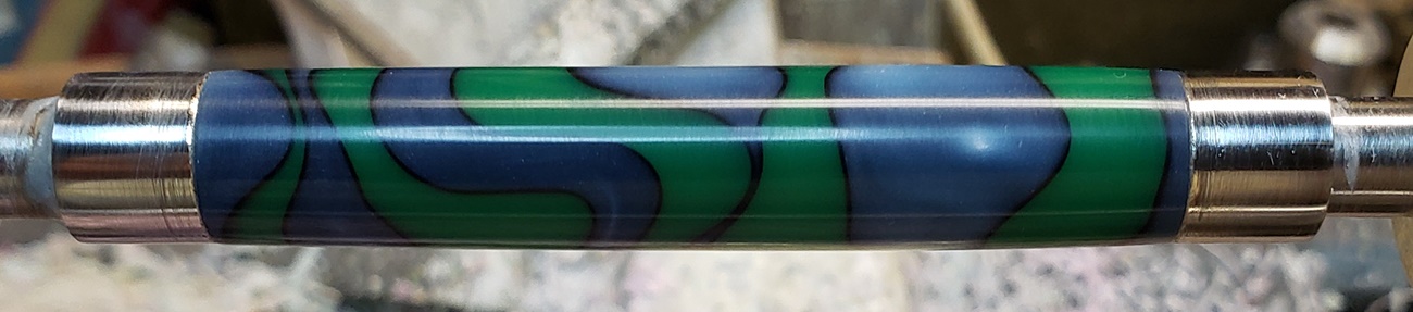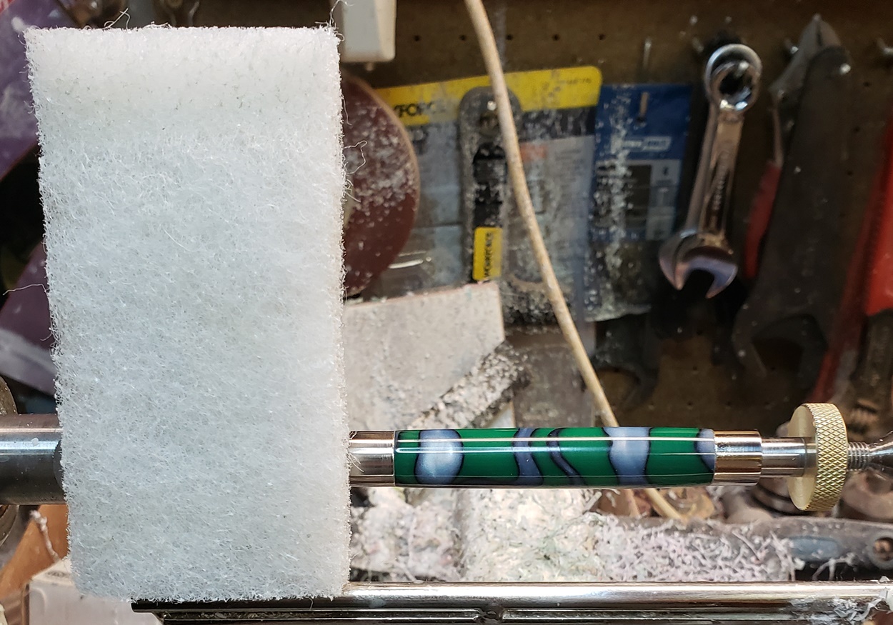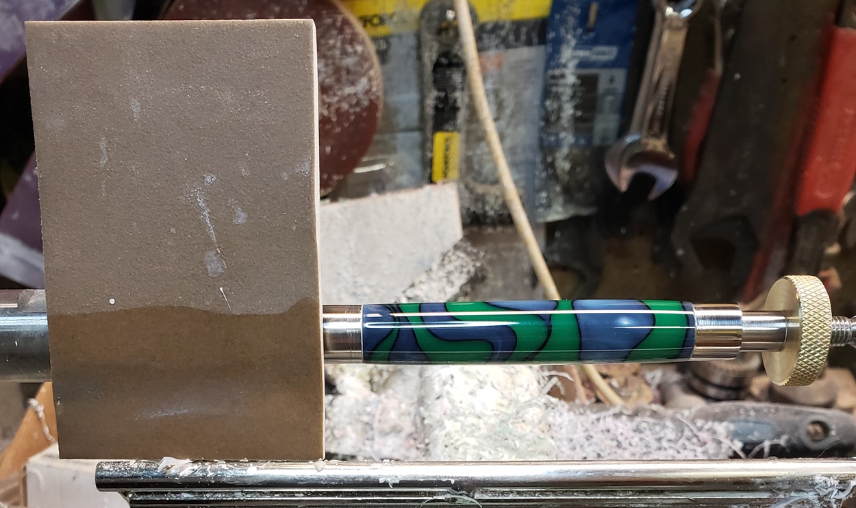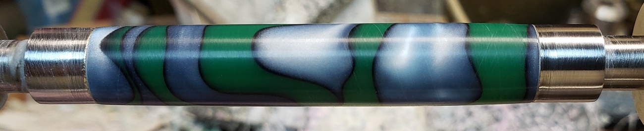 This is an AA blank from Woodcraft called Irish Hill. It's a good looking blank. First I used 220-320-400-600 wet, then polished it with Tri-M-Ite. It polished up nicely. But I'm trying to put a matte finish on it. So I went back and used the first grade of Tri-M-Ite only, but you can't hardly see a difference.