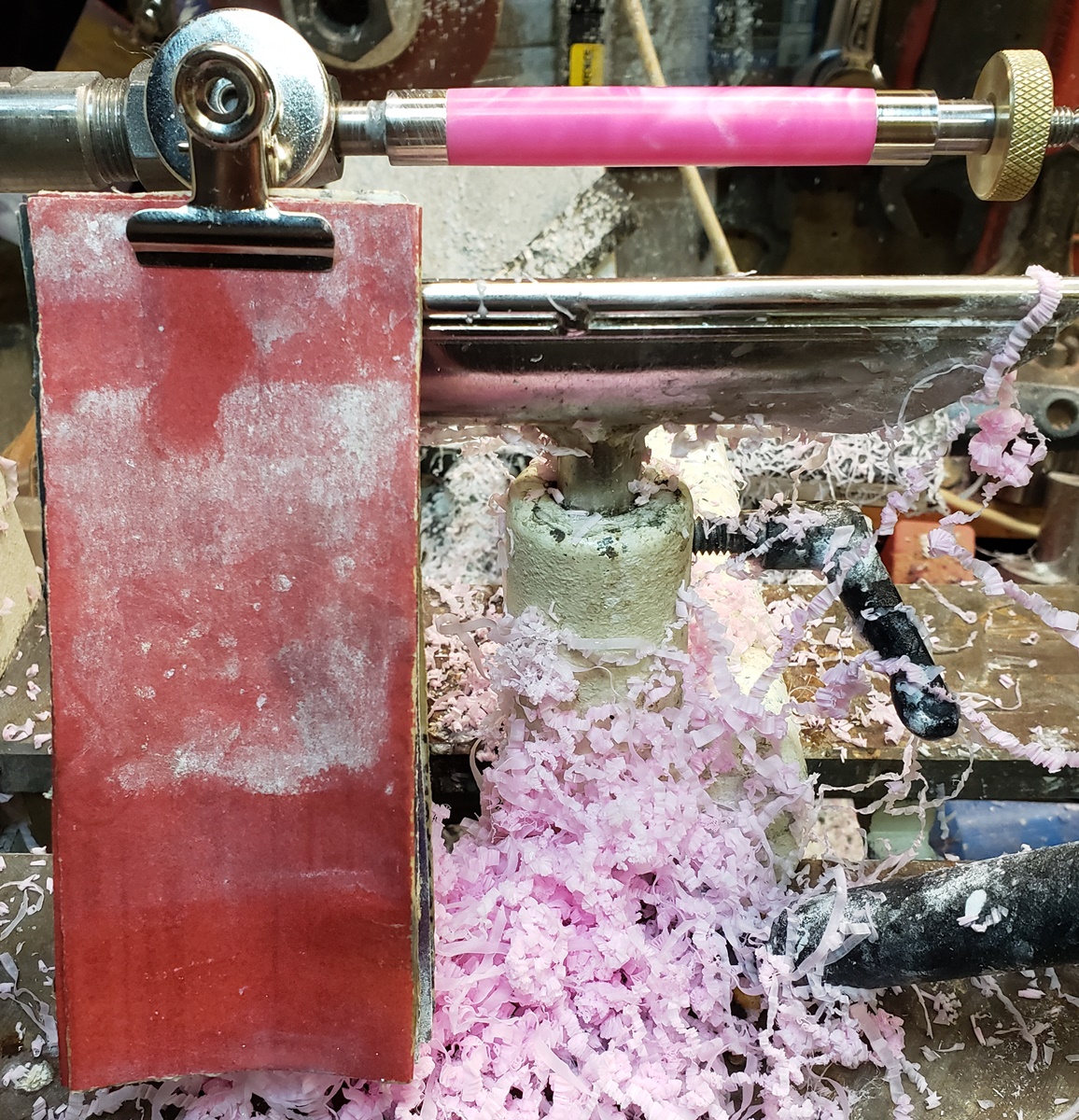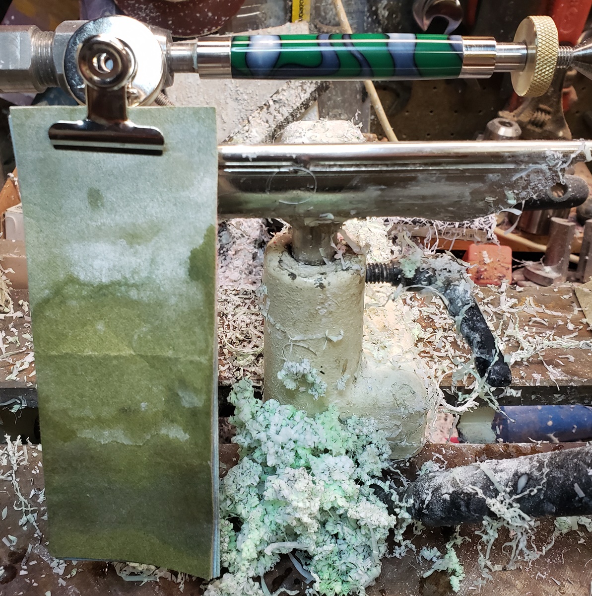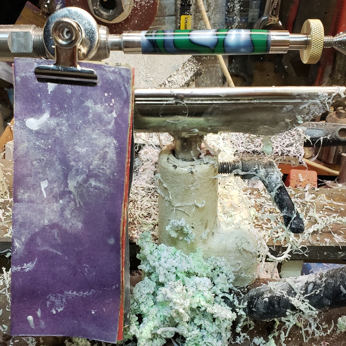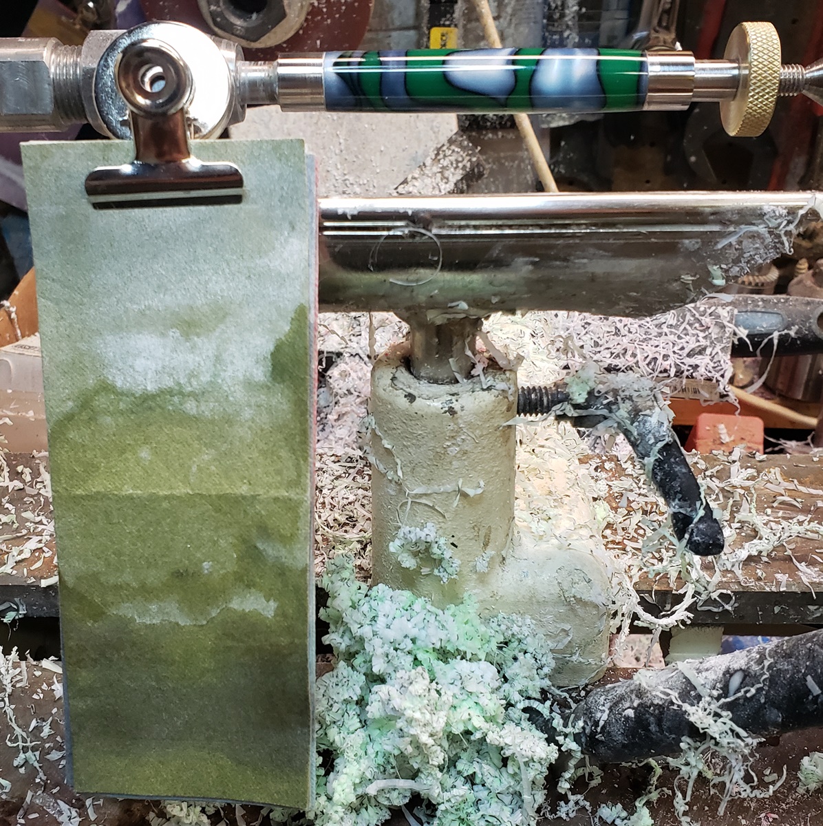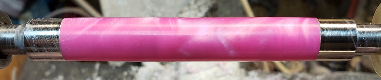This is an AA blank from Woodcraft called Irish Hill. It's a good looking blank. First I used 220-320-400-600 wet, then polished it with Tri-M-Ite. It polished up nicely. But I'm trying to put a matte finish on it. So I went back and used the first grade of Tri-M-Ite only, but you can't hardly see a difference.