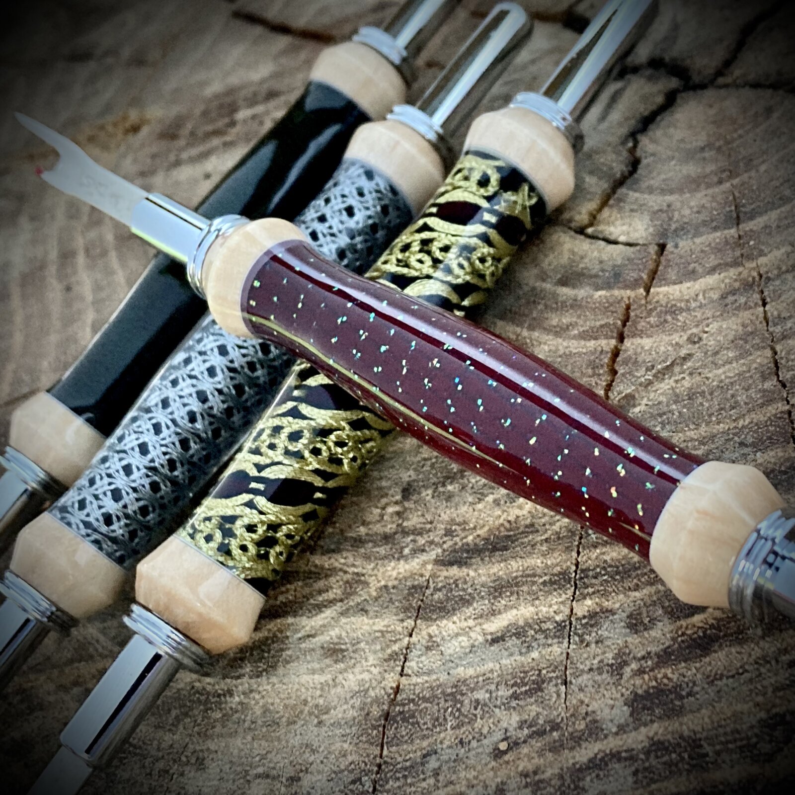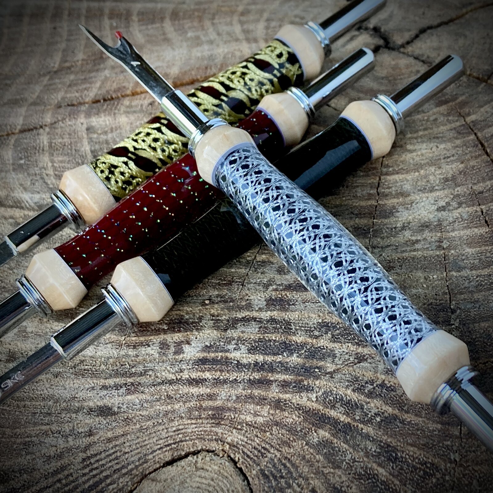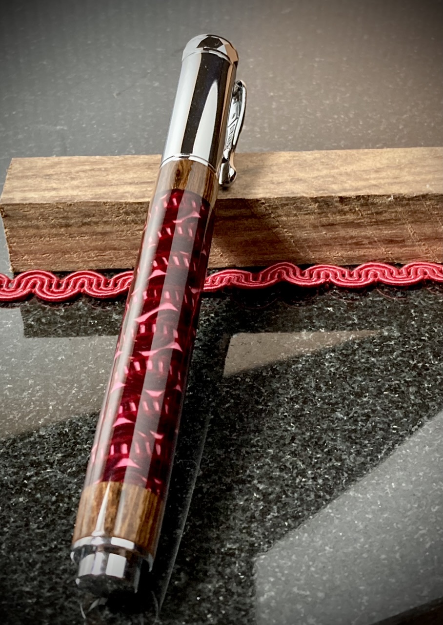 I painted the tubes a contrasting color and let it dry. I lined a dowel with wax paper and used tape to secure the starting end of the ribbon to the dowel. The painted tube fits onto the dowel over the wax paper which prevents accidentally gluing the dowel into the tube. On the other end I tied a weight to the ribbon to keep things taught. Then coated the tube with 5 min epoxy, on the thick side, and then carefully twisted the dowel to wind on the ribbon. I went all the way past the other end of the tube and clamped the dowel in my vice to set up.