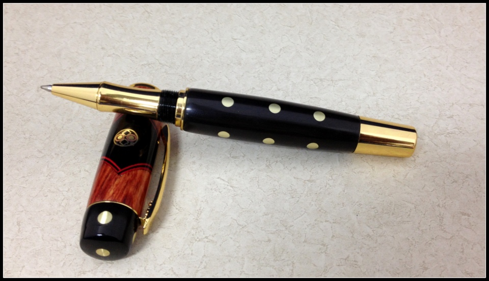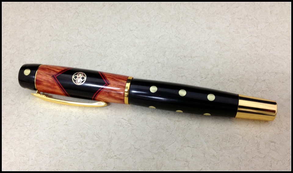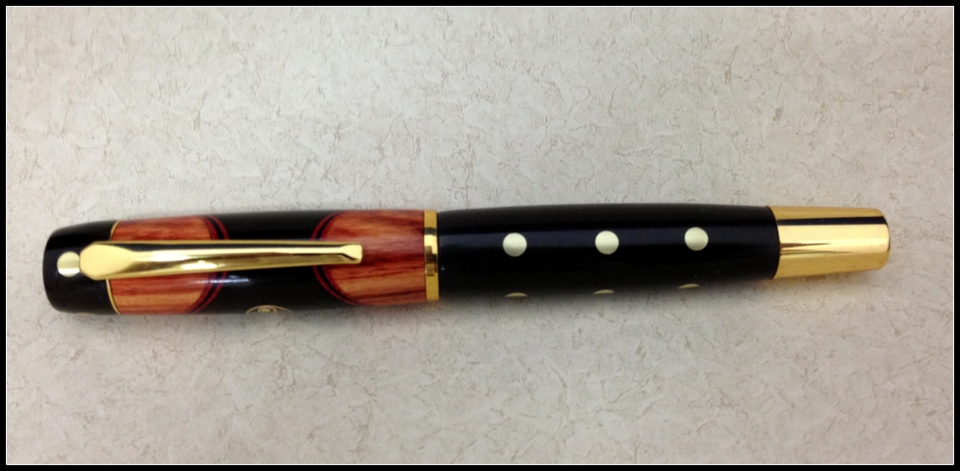 This one is made out of ebony, tulipwood?, black and red veneers, mosaic