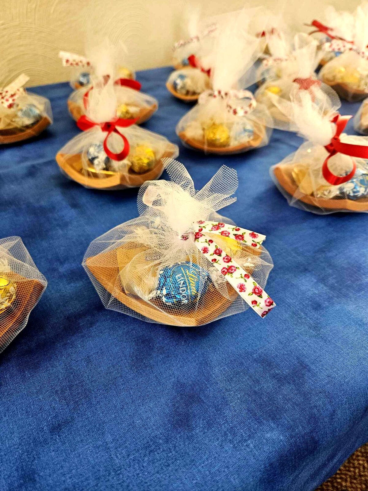 We shared about Eve this morning in the message afterward we gave out the gifts. This year we have a small cherry wood, four-winged ring bowl with, Lindor Chocolates.