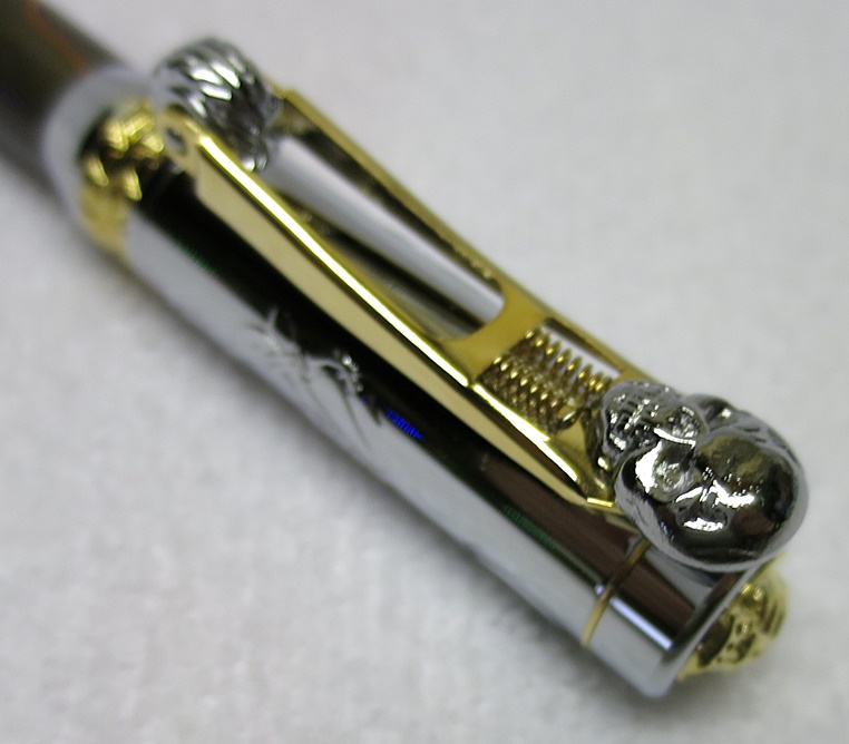 I made another mistake besides not painting the tube, that really bothers me. I didn't line up the gold skull in the finial with the clip. But there's no way to fix it now. Regardless, I think Frank will really like it. I love all the details in the kit.