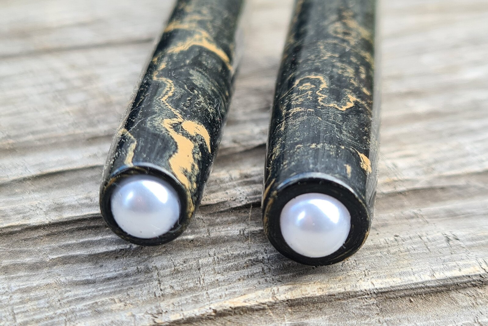 Had a play with adding pearls into the finials. Originally I was wanting to use a smaller pearl on the pen finial bit I got carried away with the hole and ended up too large.