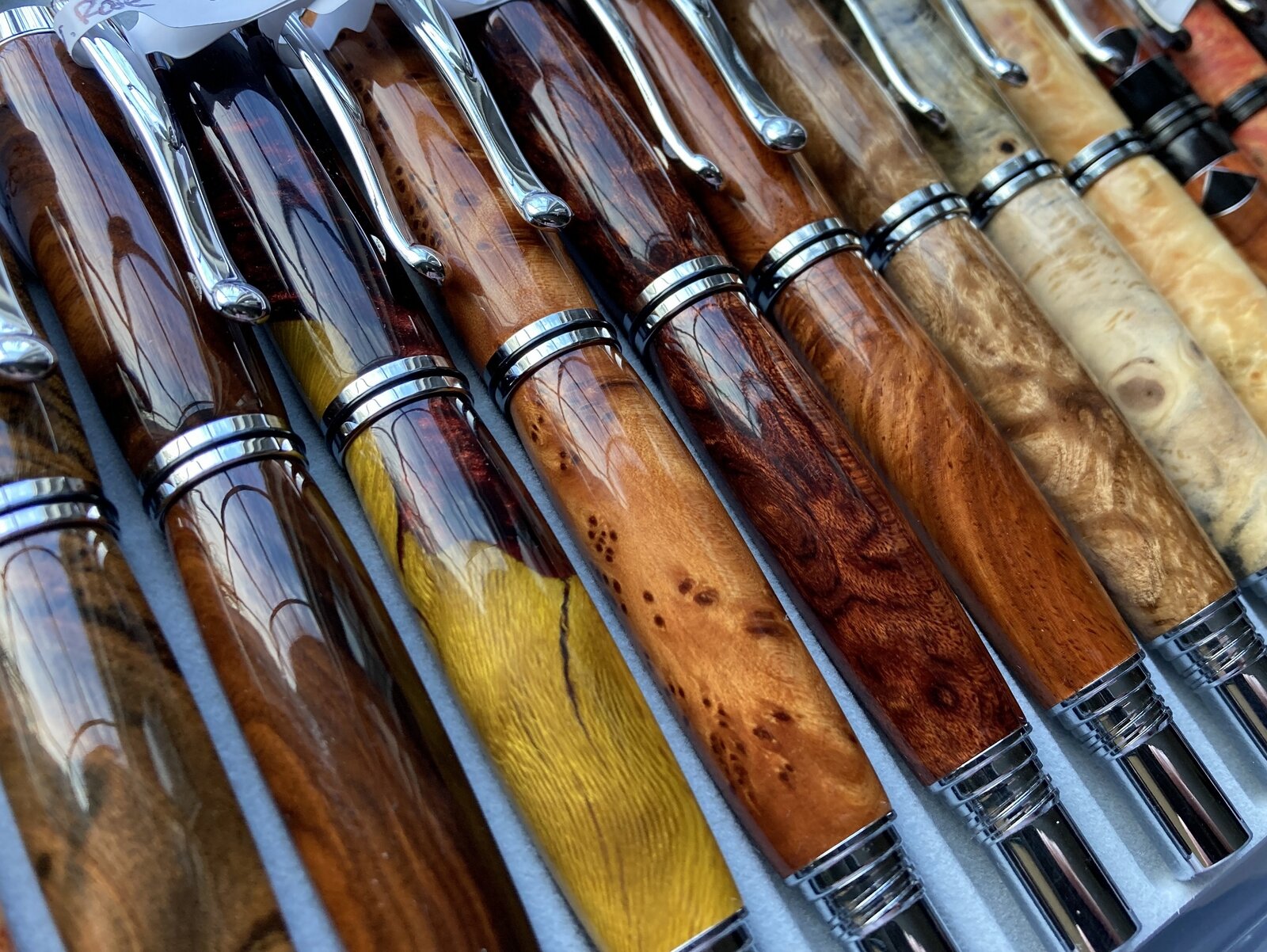 I'm really drawn to the very first "group" shot. The yellow pen is gorgeous and I always view wood as extra beautiful if it has a beauty mark. Maybe that's just me, but I love knots and stray grain/interesting figure. I think that's image shows the beauty and versatility of the wood very well.