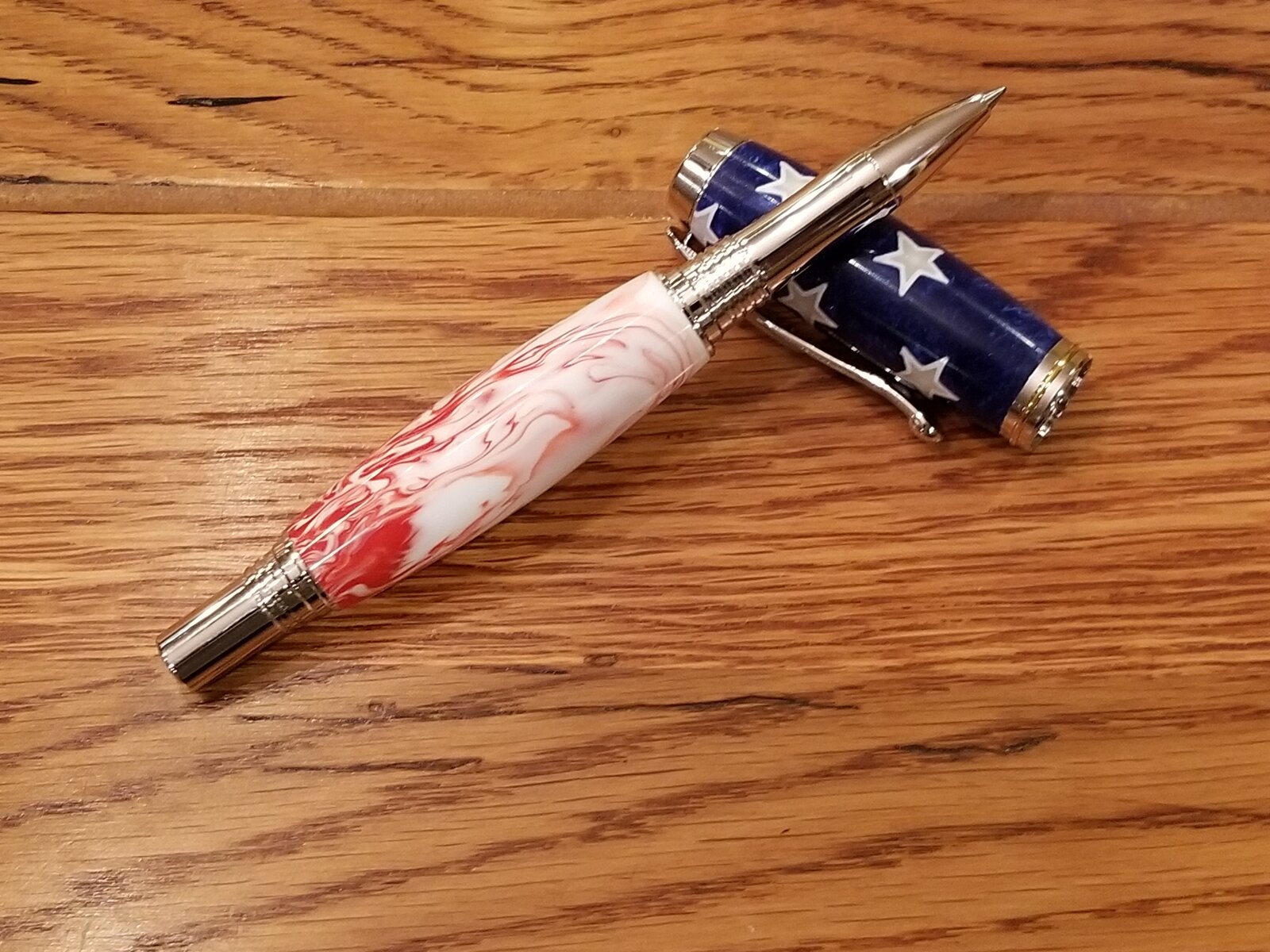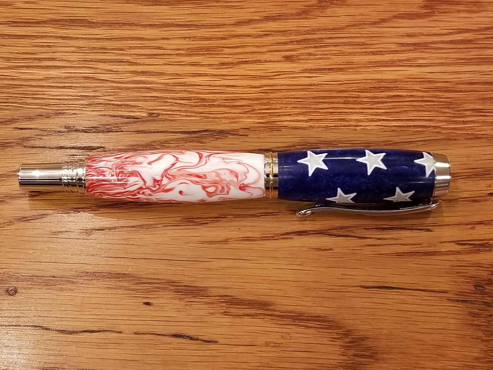 I got this star blank from Joey Keith on one of the Facebook groups. He 3D prints the stars and casts around them. The swirl is a sports resin blank. I basically just copied his example but man I love this pen. It's also my first Jr. Kit. Picked it up today at the Classic Nib.