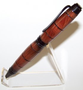 The slimline pen completes the pen/pencil set for my dad for father's day. Its red oak finished with 3 coats med CA and fancy black chrome kit. I could have been wider on the nib end, but he will like it I am sure.