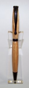 The slimline pen completes the pen/pencil set for my dad for father's day. Its red oak finished with 3 coats med CA and fancy black chrome kit. I could have been wider on the nib end, but he will like it I am sure.