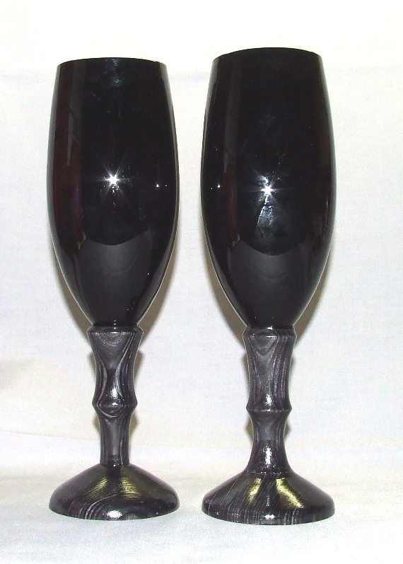 If they'll let me I also plan to have the black wine glasses.. they are on Spectraply Ebony and are about 8 1/2 inches tall.