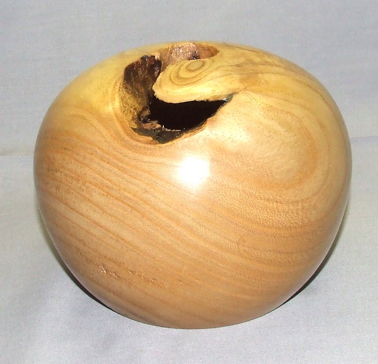 The little hollow form is a about 6 inches dia by about 5 inches high and turned from Royal Paulownia wood.