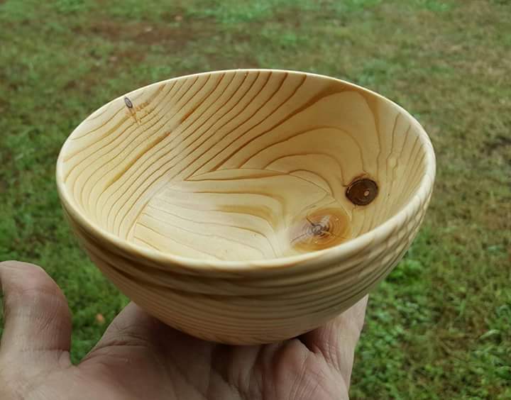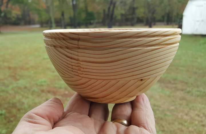 I finished my practice bowl today. I had a little problem while turning the inside. Did you know you get a lot of chatter and you can't cut very well if your lathe is in reverse. I'm happy with the way the bowl came out and I feel comfortable using some nicer blanks. I used Pens Plus to finish it. All C & C welcome