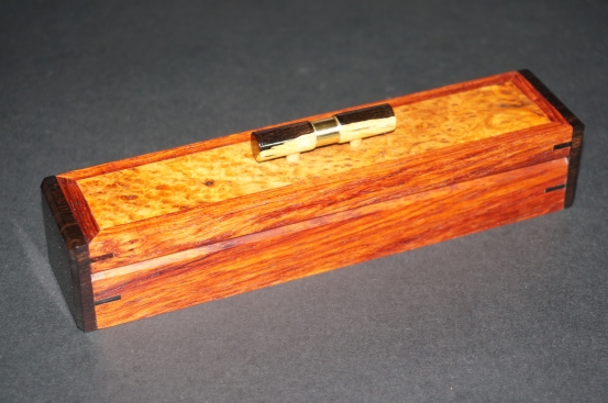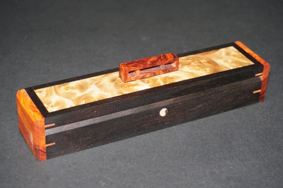 The woods I used are Ebony, Indian/Yellow Redwood, Swamp Kauri and Rewarewa with Amboyna, Carpathian and I think Afzelia Burl. I'm not sure what the burl is on the box with the rosewood and ebony/brass lid handle. I bought a job lot of burl pieces a while back and this was amongst them so if anyone recognizes it please let me know.