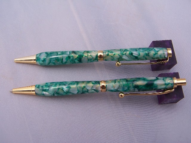 No, I didn't paint the tubes or blanks. The green "flecky" set have some yellow/cream flecks in the cast and I think that the brass really shows that off. When I finished sanding the blanks I noticed the brass, but quickly decided that it complemented the patterns.