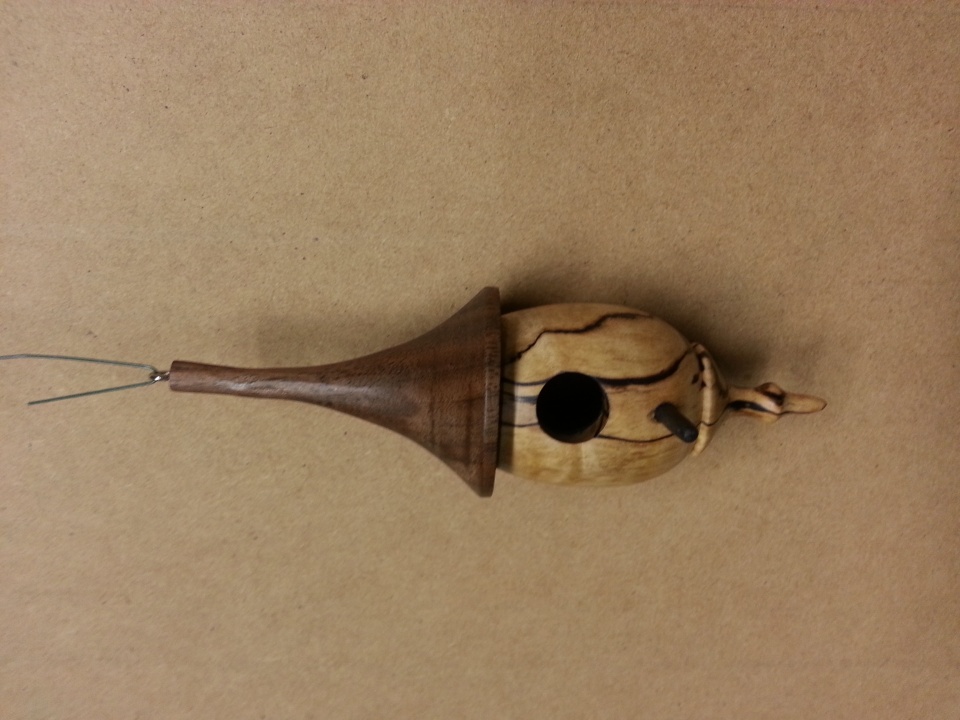 You can't see in the picture but the roof of this one Popped off the jamb chuck and cracked before I could finish shaping it. I finished the top on a belt sander which makes the roof finial look like a stick. I think it worked well and will probably do more with the roof like that.
