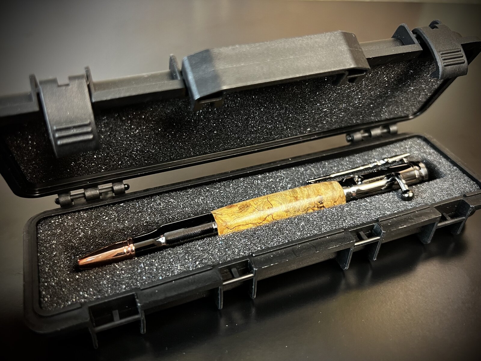 Co-worker gifted me with a couple of beautiful pieces of stabilized maple burl…. Made him a bolt action as a thank you… love the way it turned out and he cannot stop showing it off