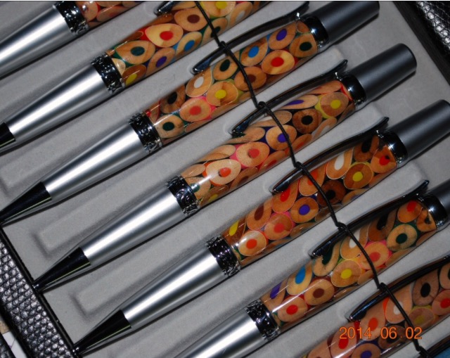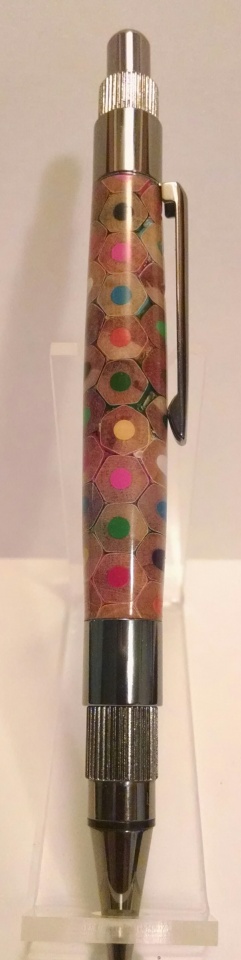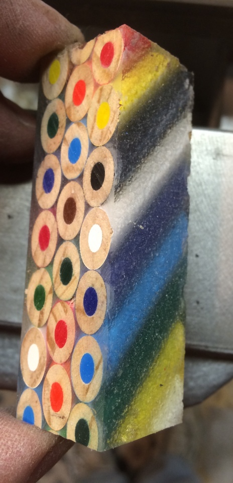 Well, here's my first attempt at making a colored pencil pencil. I like it. I made some mistakes gluing it together by not getting one or two of them tight against each other. Next one will be better!