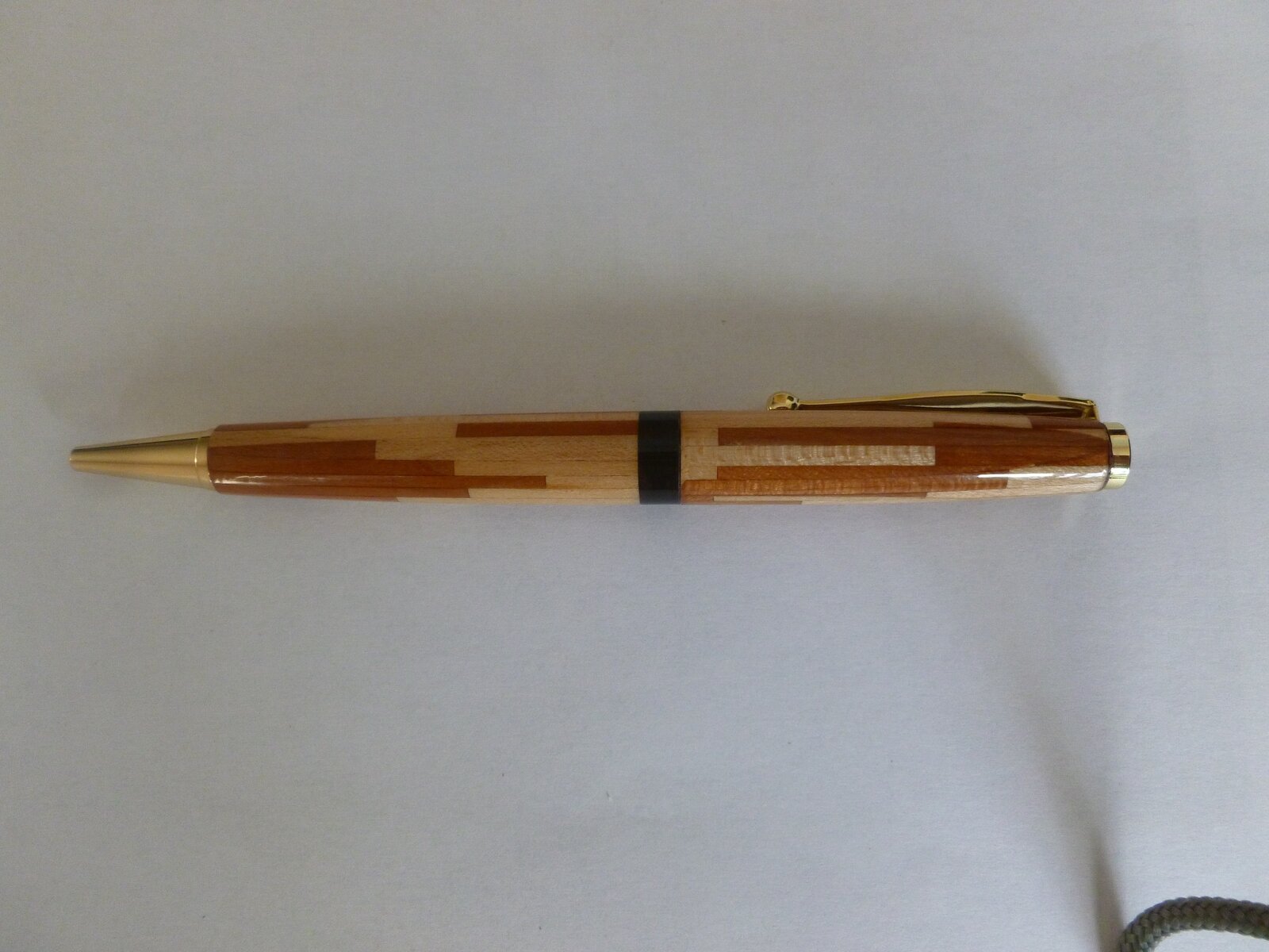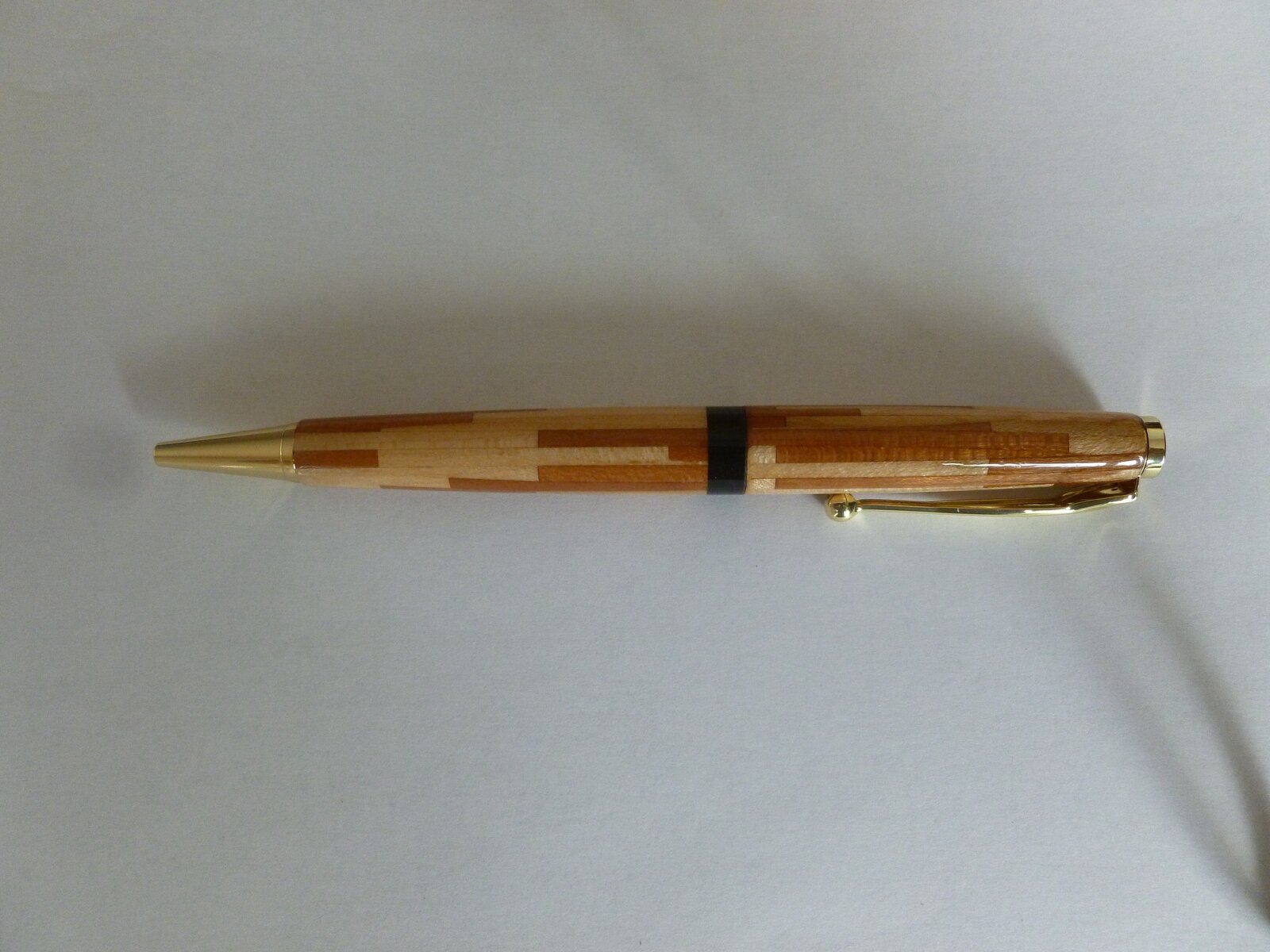 For me experimenting in woodworking is a large part of the fun and I am sure that is true for all here. Although I am very new to pen turning (a few weeks) it soon became clear that the opportunities to experiment/personalize are endless with pen turning. So I offer my first experiment for feedback from those far more knowledgeable than me. Please provide the good, the bad and even the ugly if that is supported by constructive input. Without feedback we cannot improve and who doesn't want to get better! The light colored wood is maple, the darker wood is cherry and the center band is ebony. It is based on a slimline kit.