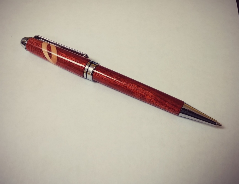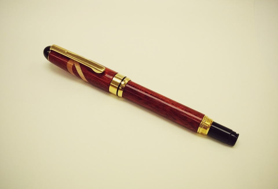 Bloodwood with maple half celtic knot insert, woodcraft kit. During sanding it appears the bloodwood stained the maple but I kind of like it.