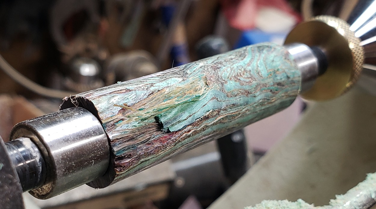 I like the look too. But at least one supplier offers stabilized hempwood. The green blank in my photos was supposed to be stabilized, but it blew out too. I hold my chisel at about 30 degrees, which has worked for me on everything else, even inlace acrylester.About the only thing that I can offer is that when I cut the unstabilized blank, I went with about a 45 degree sheer on my square carbide tool...maybe even more than 45 now that I think about it. It was a slow, painstaking process and like @KMCloonan I also had a chunk or two fly out but they were relatively small and I was able to recover.