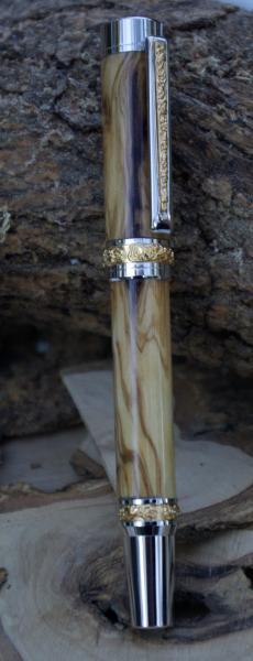 Here is a Roman Harvest dressed in Olive wood from Athens Greece. About 2 years ago I was in Athens and I was given some pieces of an olive tree. I got a band saw for Christmas so I was finally able to cut it like I wanted to. It is finished in CA (can't remember how many coats), using MM 1500 to 12000, Plastix and RW. All comments welcomed