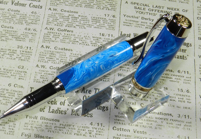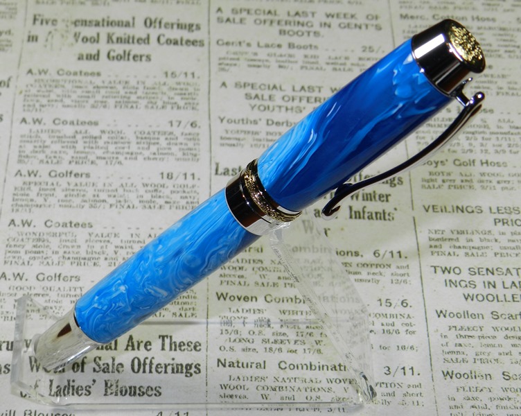 i chose a blue one and used a pristina kit in rhodium from timberbits sanded to 12k then buffed with car polish
