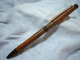 This is my first attempt at a kitless pen. Believe me, I know that it is not without errors, but it was certainly a fun experience. The pen is made of Mahogany, Walnut and Veneer. I used the barrels, transmission and clip from a slimline kit. I am not crazy about the clip and will probably end up making one and replacing it. I don't have the materials quite yet. Sorry the pic didn't turn out the best.