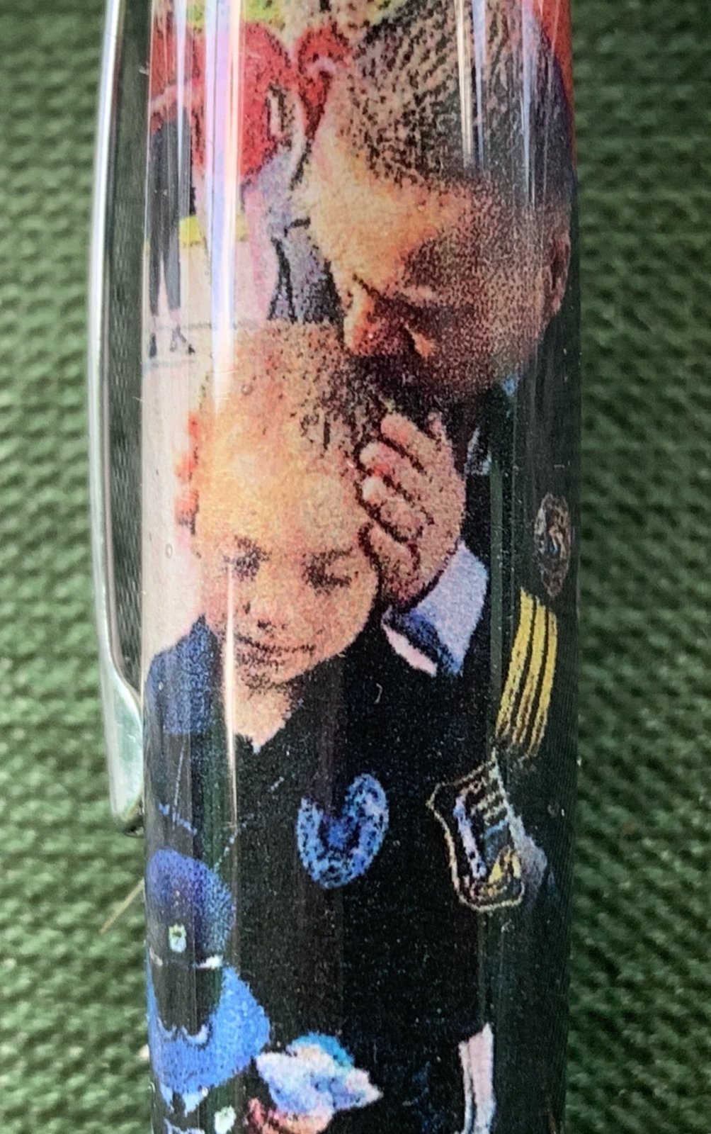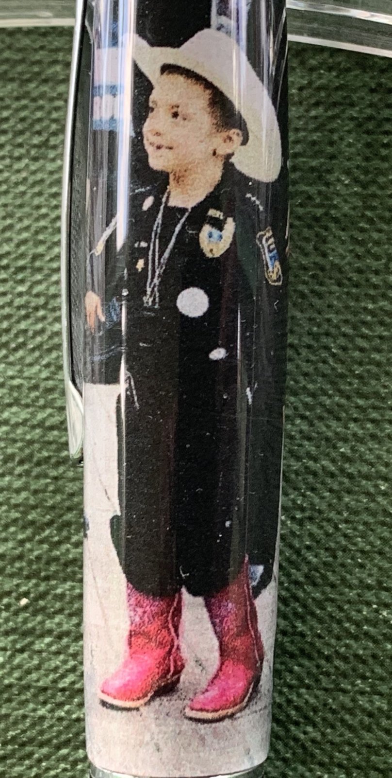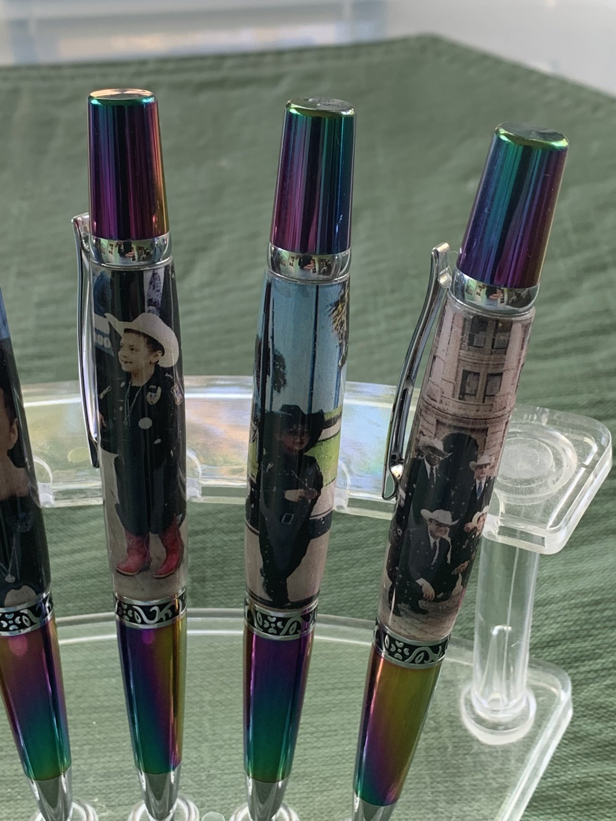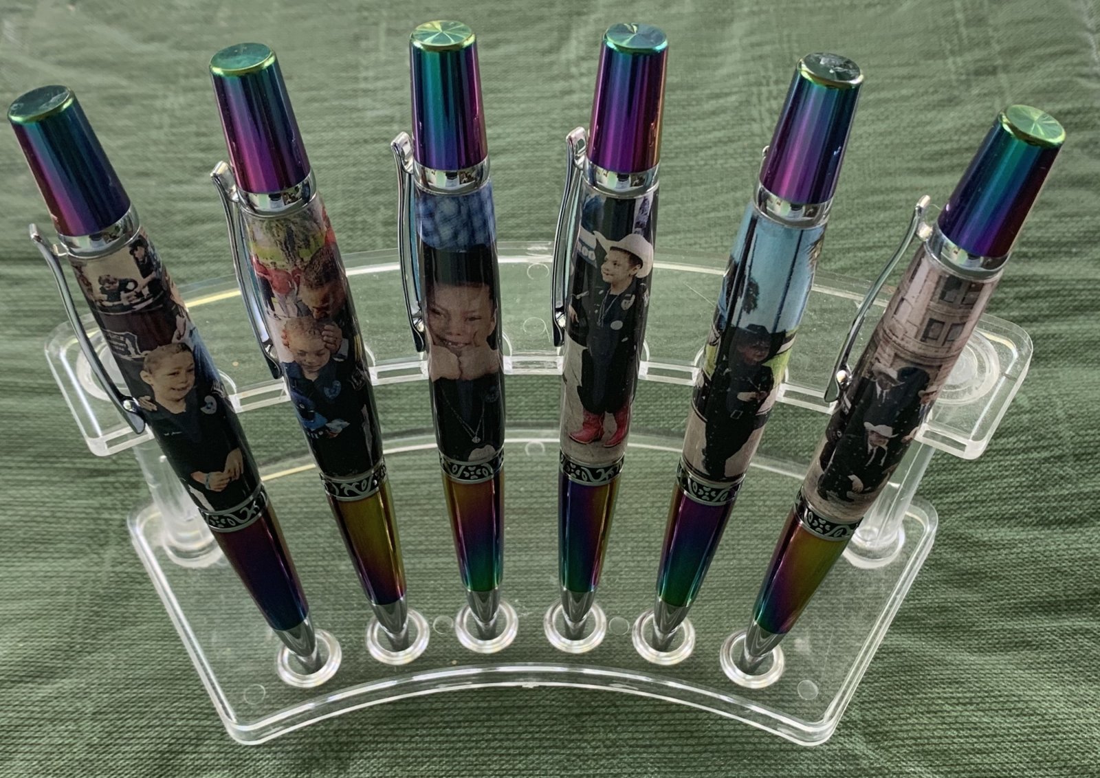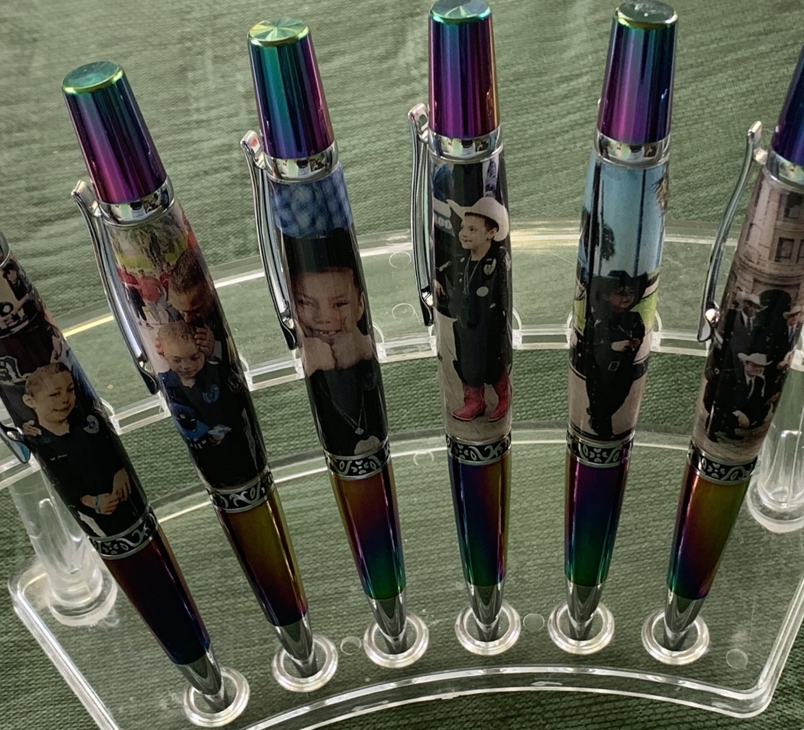 This is a set of pens that I made in honor of my 7 yo great niece, Abigail Arias, who is battling terminal cancer. Her desire was to become a police officer, so Freeport, TX Police Chief, Raymond Garivey made her an honorary member of the Freeport Police Department. Since his "adoption" of Abigail, she is now an honorary Texas Ranger and an honorary member of a number of other law enforcement agencies around the country. She and her parents have established a foundation to benefit other families of children with cancer.