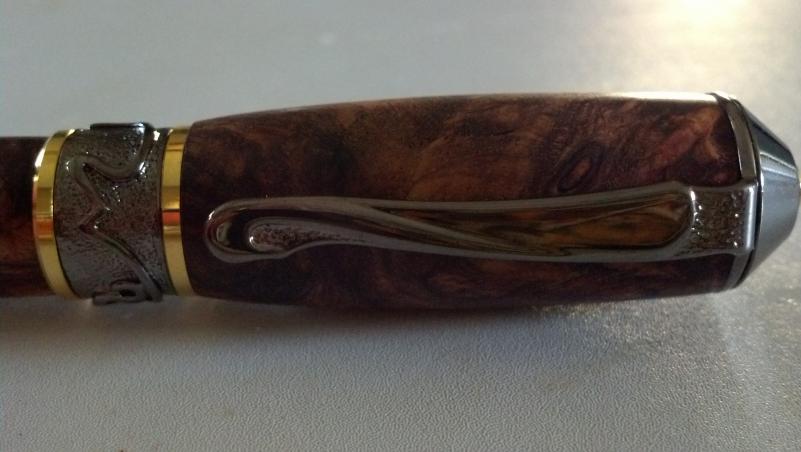 Good job matching the materiel to the kit. Sometimes figured wood and fancy kit can clash but that combination works. Something that can help is using a set of calipers to measure the hardware and a few points along the blank to check for high spots. A quick touch with sandpaper on a board can do the same. Looking forward to your next one.