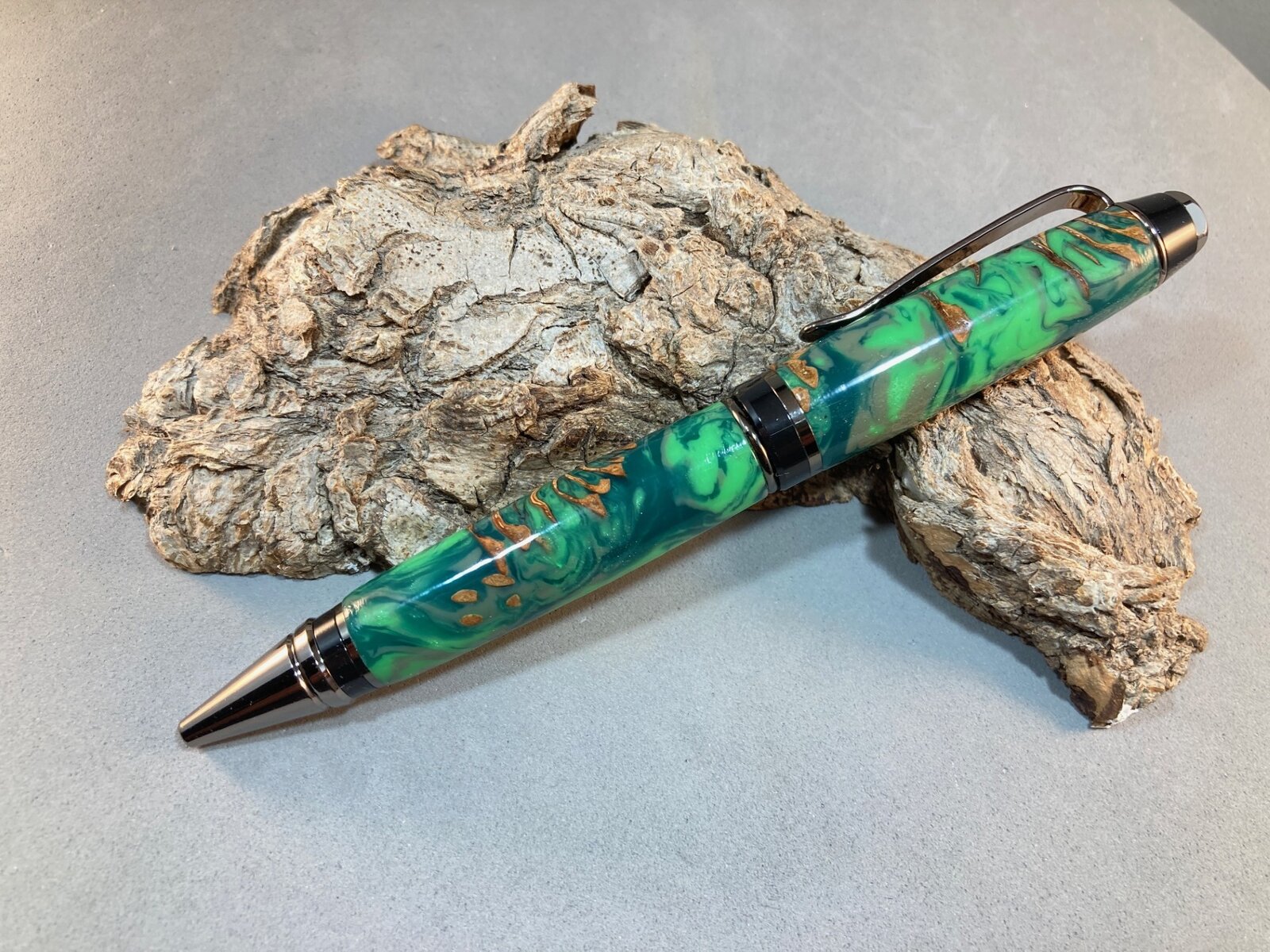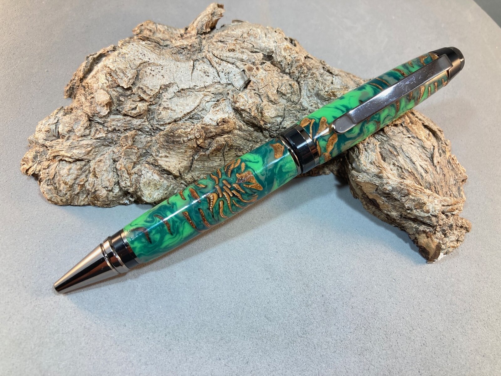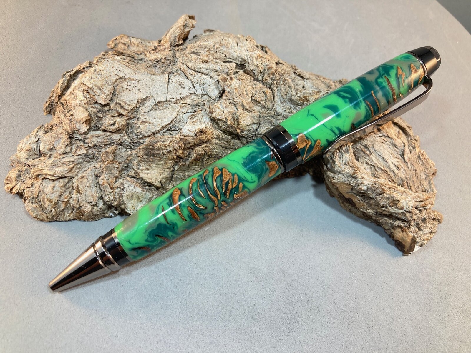 I picked up some pine cones under some trees in the neighborhood, dried them in my oven, then cast them in Alumilite clear slow.