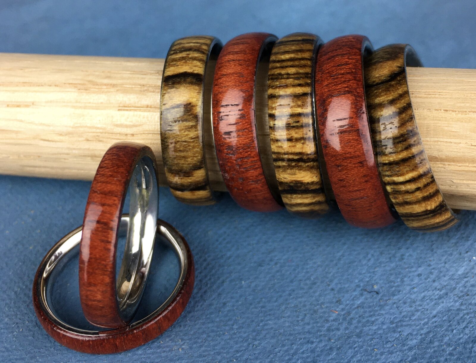 I tried my hand at ring making (no pun intended). It certainly requires a delicate touch - see attached. My first attempts weren't wholly successful. I got started because I wanted to make one for my wife as a surprise but I got the size wrong by measuring a ring she has but I now realize she does not use :(. Plus, believe it not, my wife now wears my gold wedding ring. It just goes to show how we change over time. So, I decided to make a "wedding" ring for myself since my wife has urged me to have something. I could have purchased one but this is more personal. I think the wood is bocote and it has a CA finish for durability.