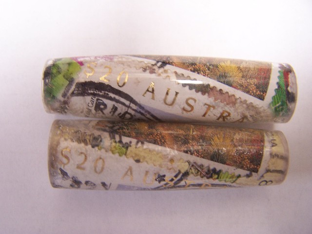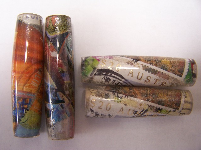 The stamps are fairly big and rectangular, so I was unable to get a "STAMP" affect, but the $20.00 ones were too good to pass up. I think I will use square ones if I try it again.