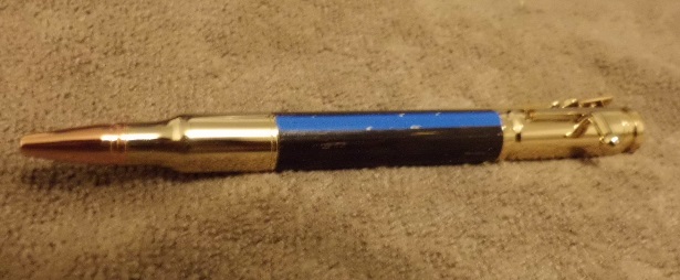 24kt gold 30 cal bolt action pen kit in ebonized red oak... and decal applied (testing decal application procedures and results for a much more important project coming up).