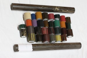 I contacted a few manufacturers recently to acquire about ebonite and asked for samples. I received one package in the mail yesterday that contained cutoffs from each color that they offer. To my surprise, they also included two 20mm by 8 inch rods of a black and tan swirl color!! I told the guy that I was a pen maker, so I think he included those as a little "extra" for me. How wonderfully nice!!!