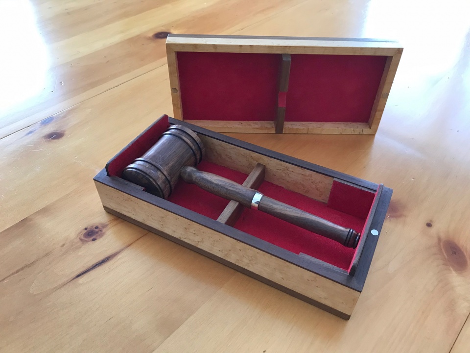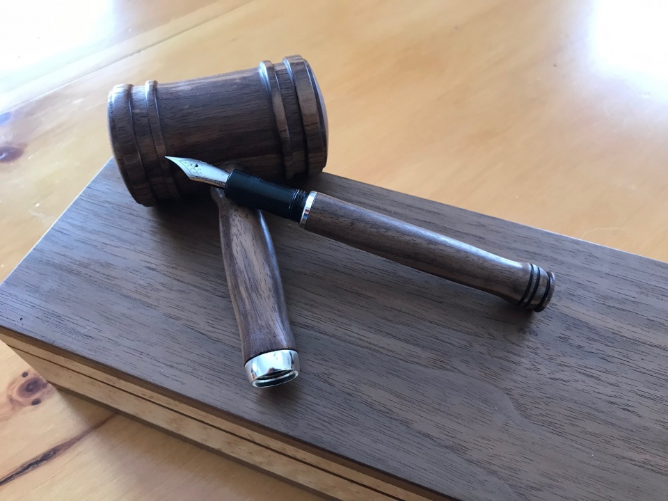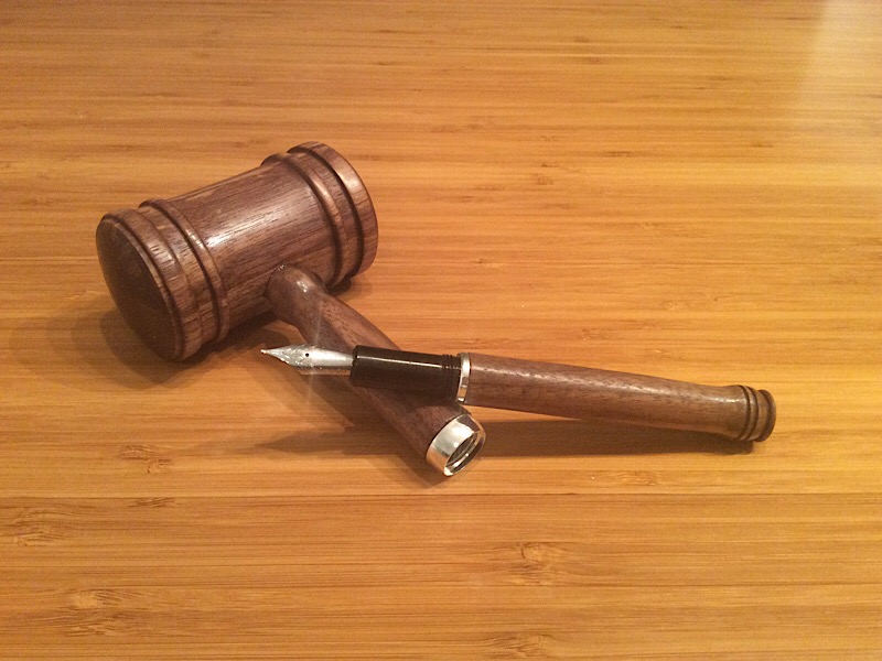 I was asked to make a gavel for use by the president of the Ottawa Fountain Pen Society. The walnut for the gavel was provided by the outgoing president.