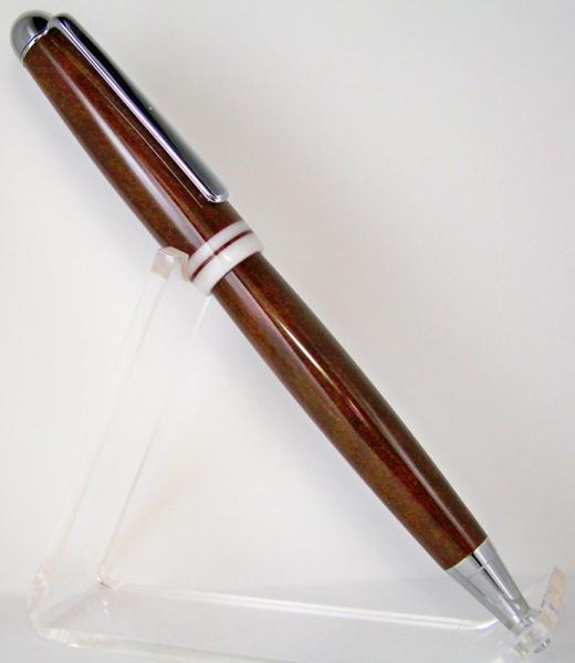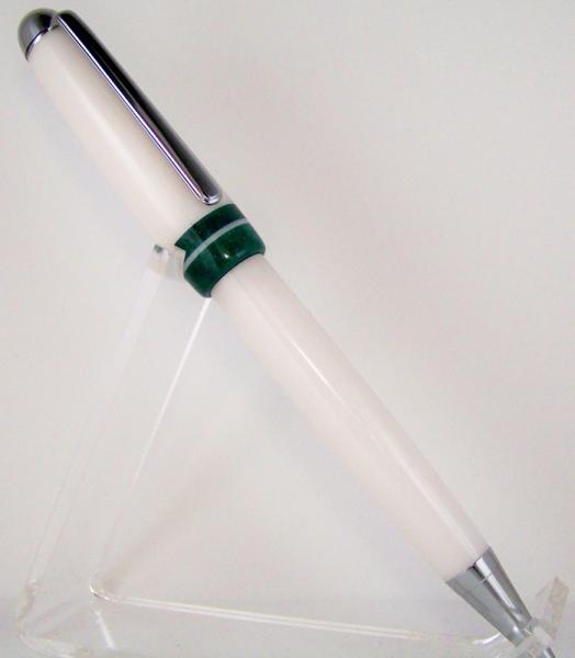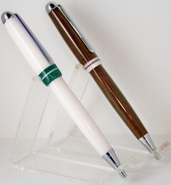 First of all...I hope everyone had a great Thanksgiving! My wife and I had some friends over for an early dinner since my wife is working nights right now. So that left me with the rest of the night for shop time! I'm really enjoying making this style of pen. Prepped the blanks and glued everything up yesterday, painted both sets of tubes white although I don't think they needed it. They are both my home cast blanks, I went for a more subdued look without as much pearl to show off the clean lines of the custom centerband. Both are MM to 12000 and polished with PlastX. I'd also like to get your opinion of the photography as well. I'm really liking my new setup/lighting. Thanks for looking and for any comments/critiques.