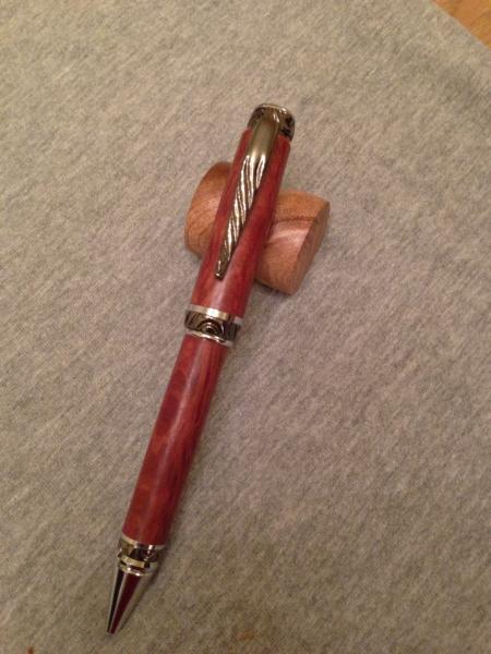 My latest pen I made yesterday a cigar ultra kit not sure what the wood is (perhaps someone could enlighten me) it came as packing with some pen blanks I bought. It had a bad bend in the middle but I managed to get 2 straight pieces out of it. My next pen is going to be the bolt action bullet pen just waiting for it to arrive.