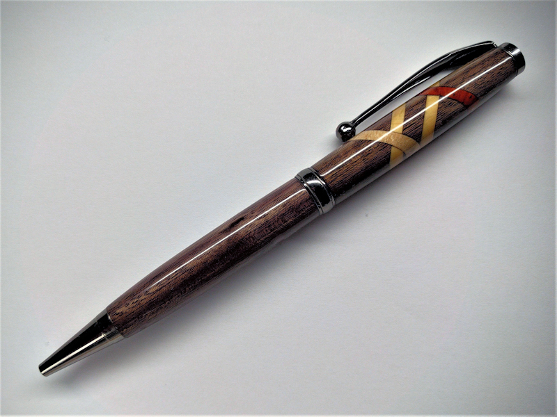 Both are great pens. I have a question on the second one. First off this isn't criticism. I'm curious to how you made the blank. I noticed the patterns are very symmetrical and the colors are reversed. Did you make the top and bottom separately or cut two pieces of wood and cut and glue them up as one piece? I made two pens that are similar to yours and I stacked two blanks on top of one another then cut the angles. when I finished cutting the pieces I swapped the different colors out and made two exact pens with the colors reversed on each pen. Just being nosy.