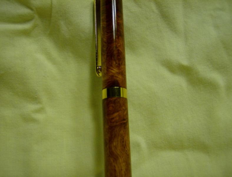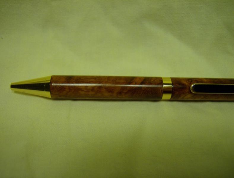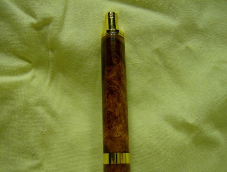 Very nice, especially for a first pen! She seems to ahve done an amazing job on the turning at the bushings- perfectly fit, not over or under turned! Maybe you'll have to start sharing your shop...