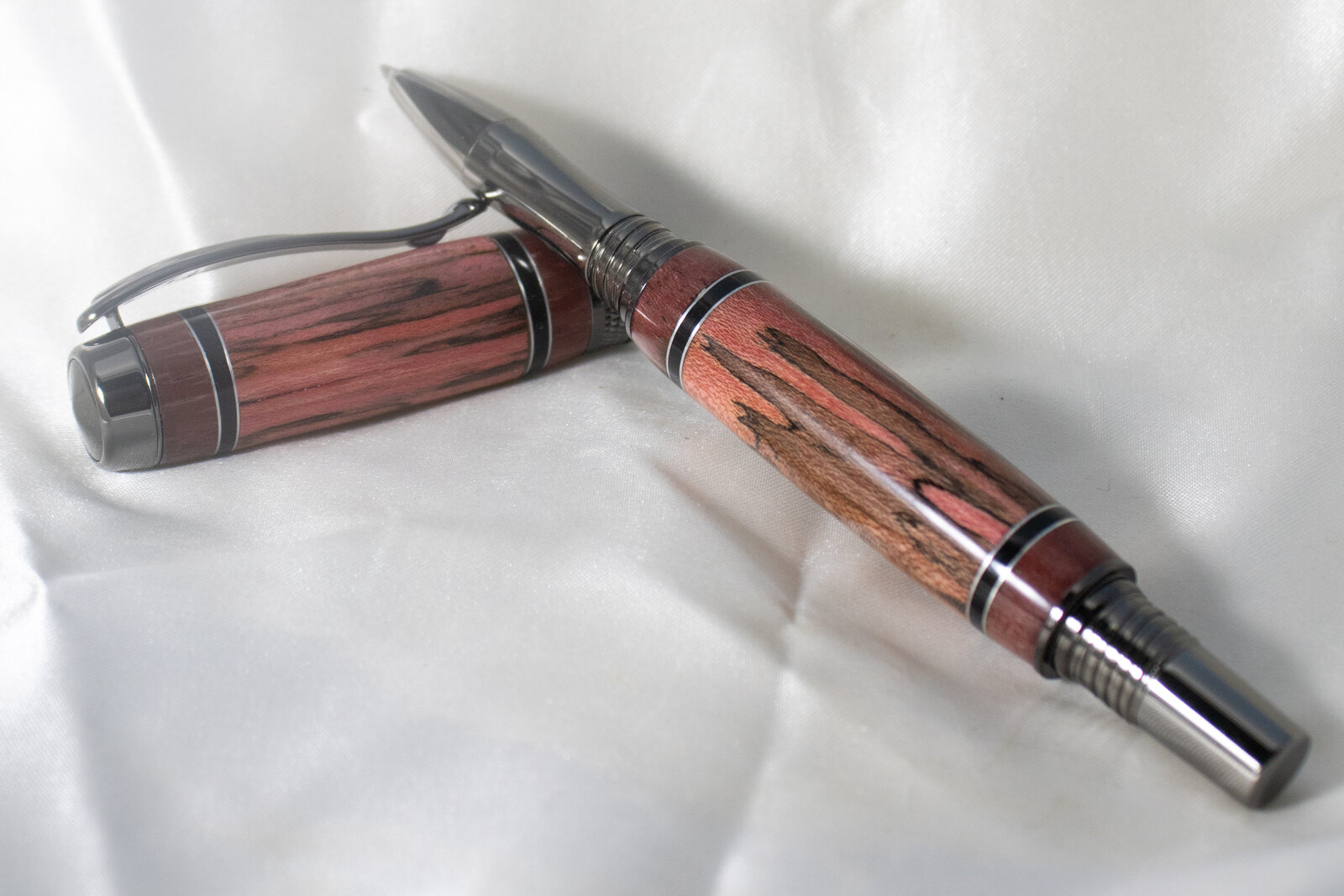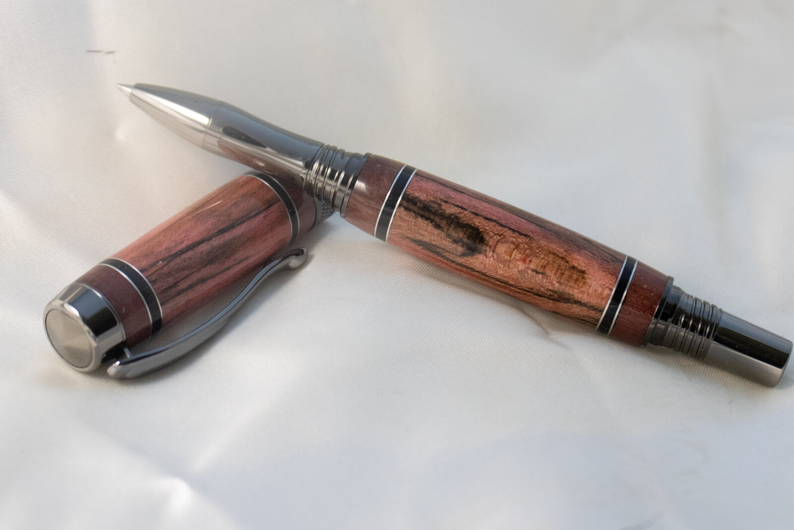 A terrific looking pen ! I'm sure he will appreciate your giftMy nephew turned 50 today. I think he might like this rollerball. Wood is stained and stabilized spalted maple with purple heart, black resin, and aluminum segments.