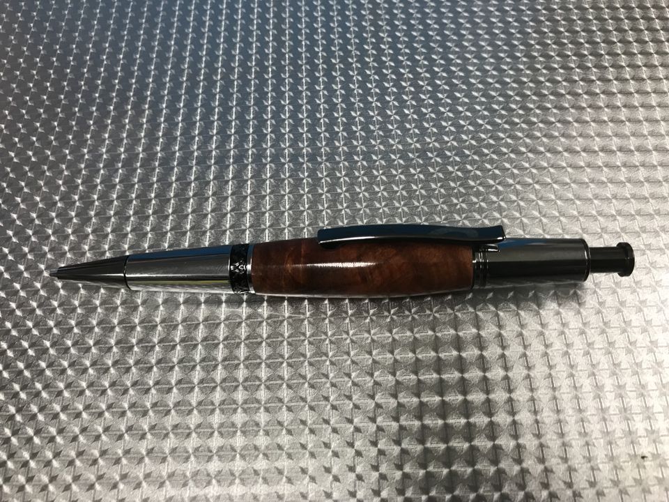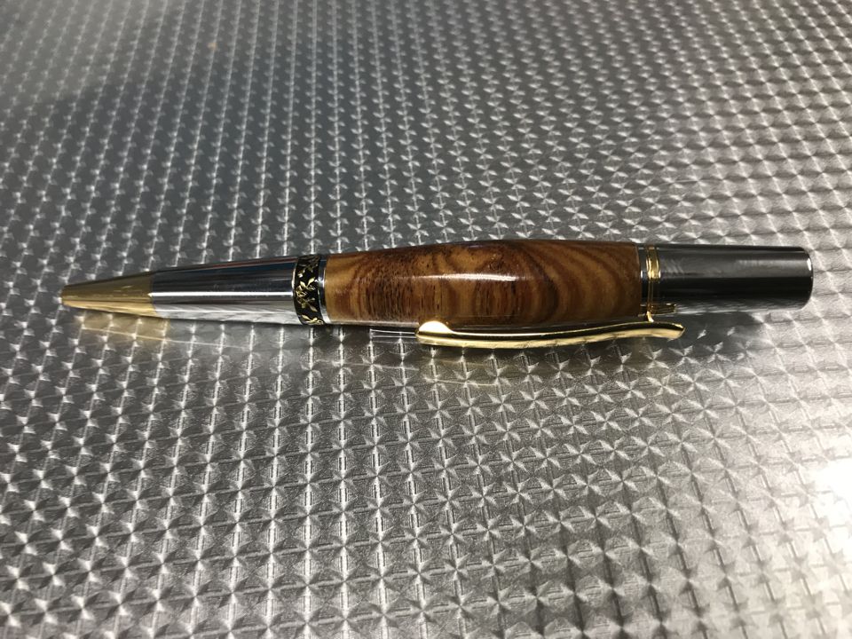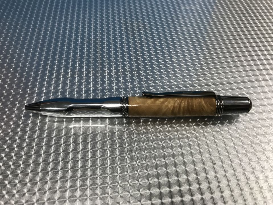 The Aero Elegant kit was purchased from Exotic Blanks. I really like this kit. I paired it with a piece of crosscut canary wood from a board I purchased at Rocklers in Buffalo. I really love the look of this pen.