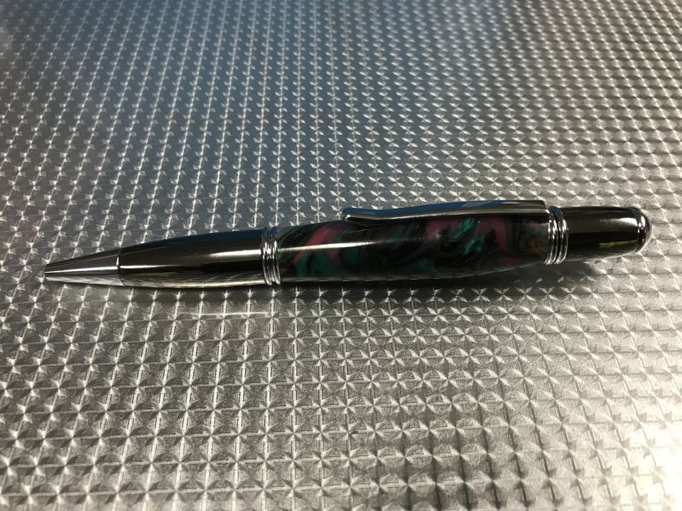The Gatsby was a project I reclaimed from anther time and had set aside for later. The original blank cracked. This one was a piece of acrylester from Rockler called abalone, even though it isn't.