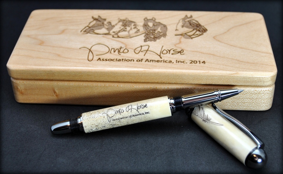 I recently had the opportunity to do a pen for The Pinto Horse Association of America. This was a custom order by one of their judges. The pen and box were in their annual auction and fund raiser. The pen sold for $1200 for this fine organization and their youth programs. :biggrin: