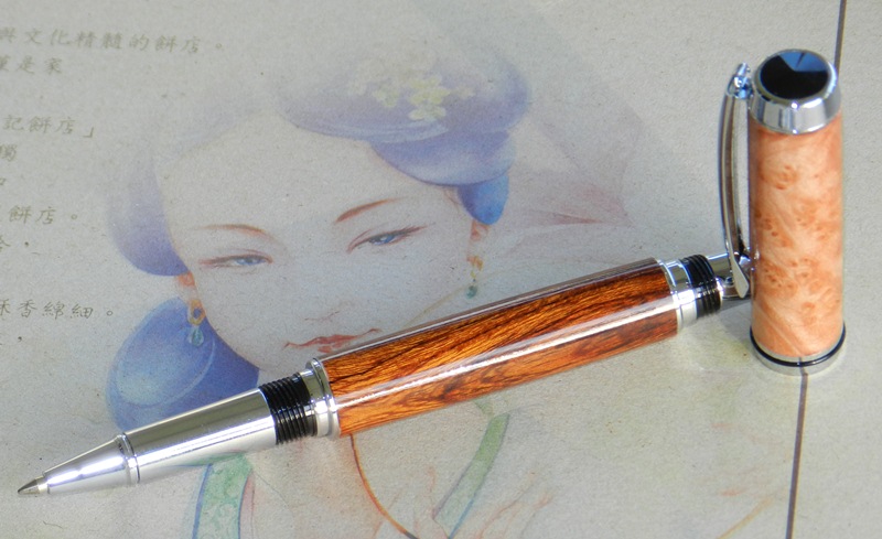 i opened the box and found my pith pen made from birds eye maple and desert ironwood and a few blanks and as i was digging deeper into the box i found another small box and inside was an amazing kitless F/P with some custom made parts WOW i cant thank him enough , in the blanks one really suprised me it looks to be oak its marked from a tobacco stave