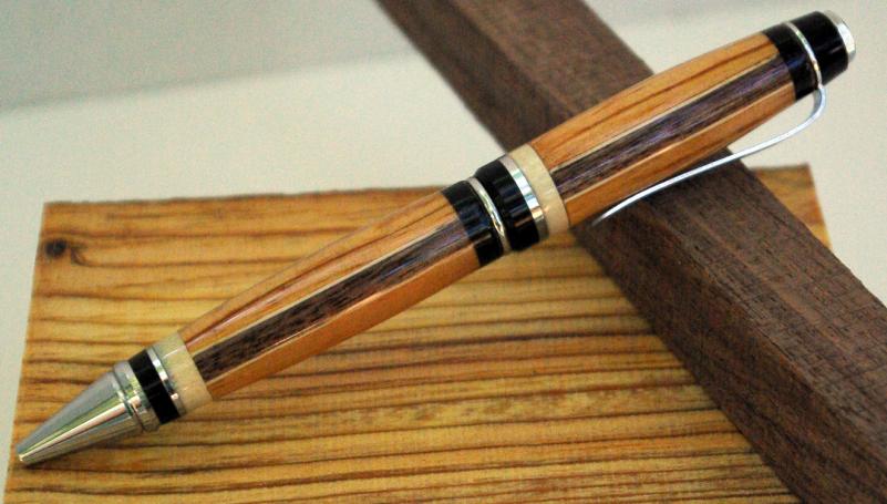 Here is My PITH that went to Aurelian. I really enjoyed making it even though I had two blowout's before I got it completed. I enjoy segmenting but it is always a learning experiance. This cigar is wraped in Old pine, maple veneer, mahogany, holly and Gambon ebony. It is finished in .5mm of CA, polished through all the courses of micro mesh, then plastix and RR.