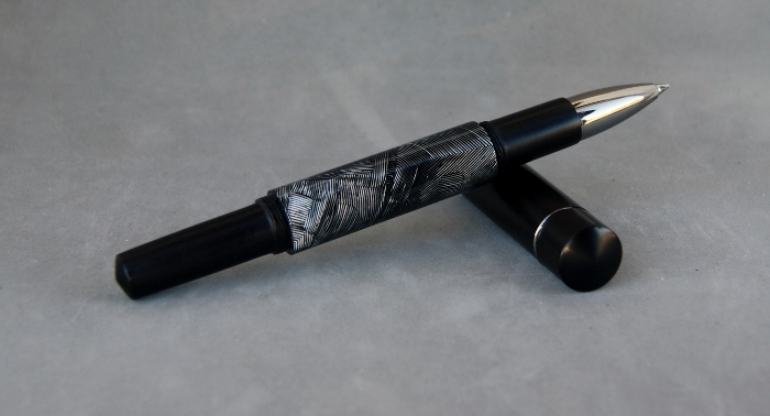 Here's the pen I made for Brett for the Dec. "Kitless" PITH. I tried to go with a design I hadn't tried before. Plus I went with a rollerball instead of a fountain pen. I thought I might get more use that way.