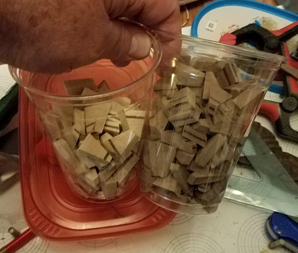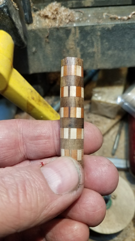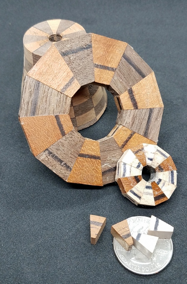 The failed one was rings of maple and cherry with some thin strips of walnut. I was under a time crunch for the second one so I saved my eyesight and lost the strips of walnut.