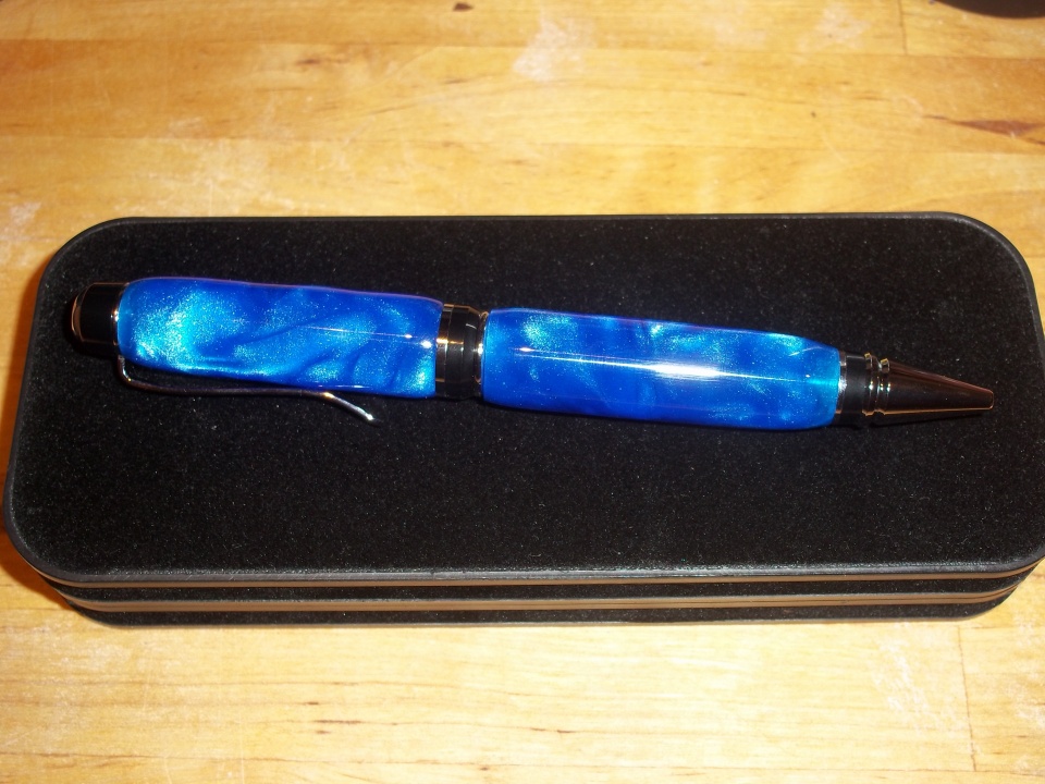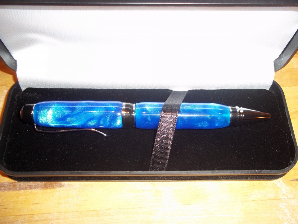 this time for a retiring teacher. his first go at an acrylic. I took care of the cutting and drilling, once mounted on the lathe I let him loose.