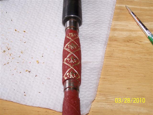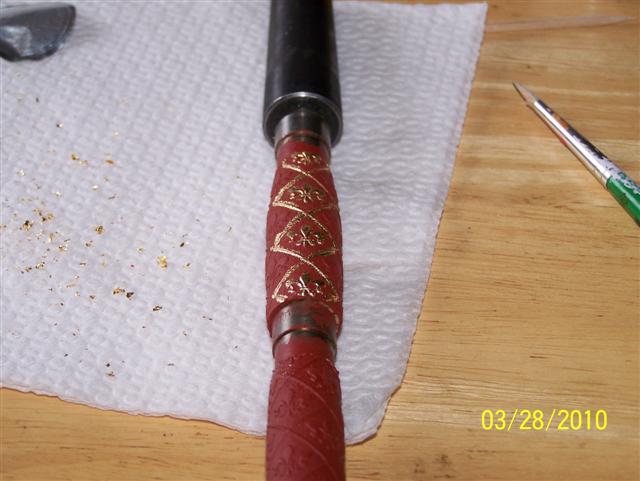 Hopefully, if my mind is still together, it will be gold leaf on a marroon background. Sort of like a Ken's Steak House Salad Dressing logo.