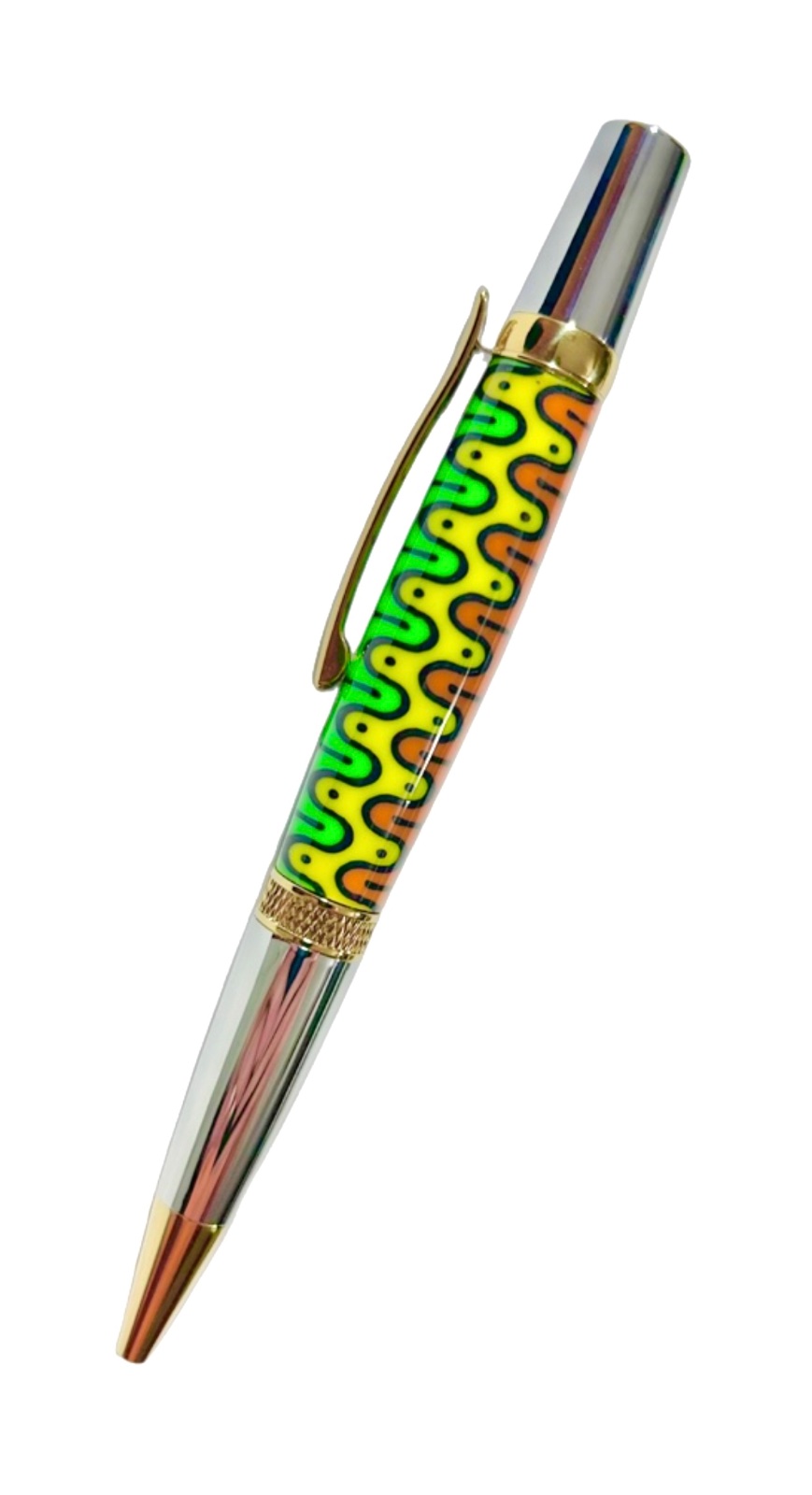 A short while ago I seen this post about some handmade ebonite. The green, orange, yellow and black combination really caught my eye.