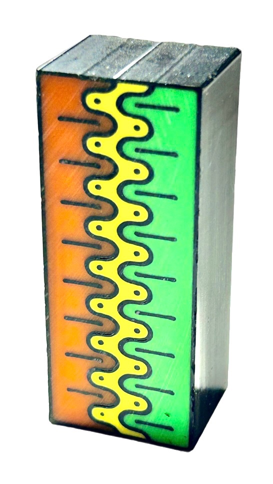 Thanks, Here's a picture of the raw blank. The shell was 3D printed and then filled with each resin color. It opens the door to different color variations, I've just lack the time play more with it. The only requirement in using it is drilling dead center, to keep the pattern straight, which I find easiest to do on the lathe with a 2 jaw chuck set up. I've been getting to know my new laser also, and hope to make some new blanks with it but I have more to learn before that gets done.